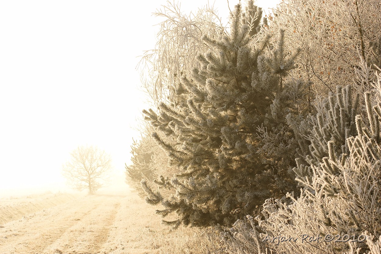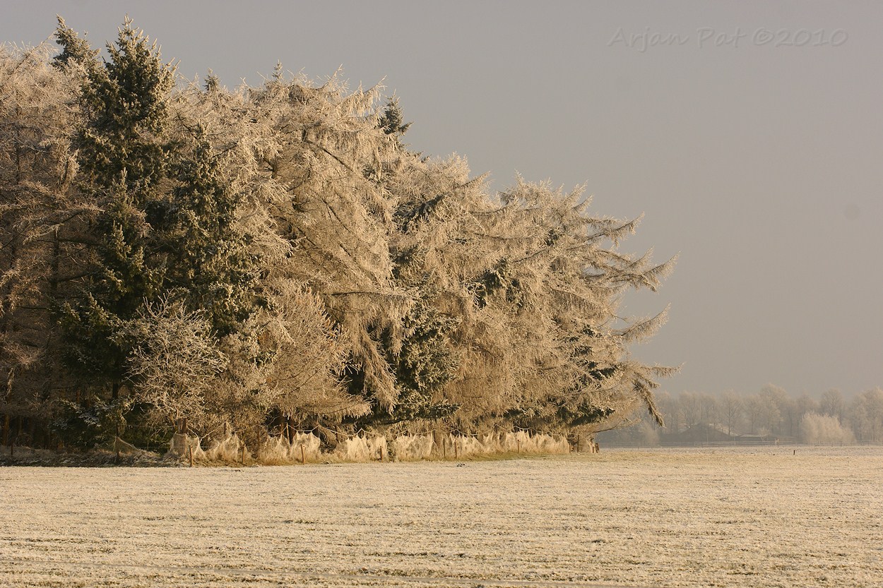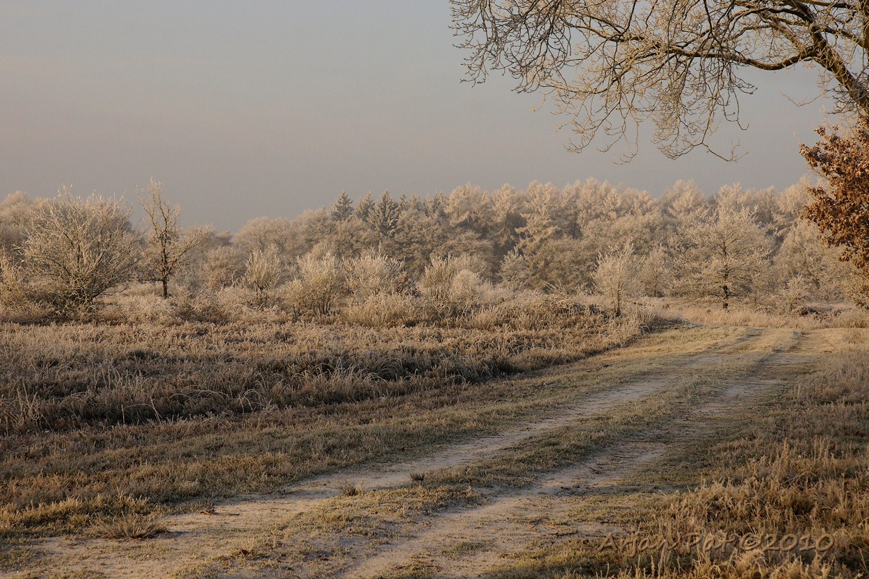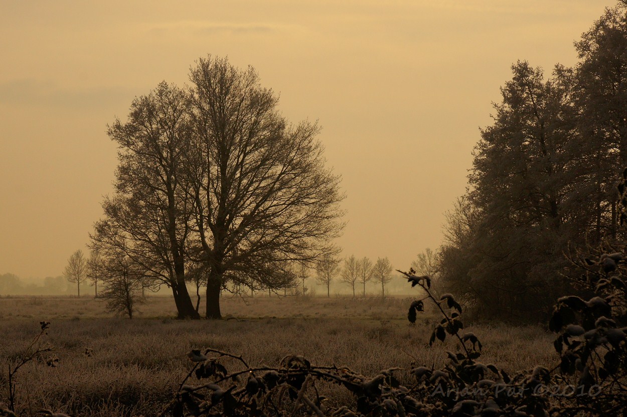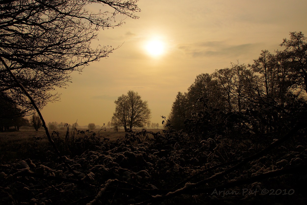 Al het water, zoals in deze ven, was bevroren. De goudgele zon is hier dan ook twee keer zo fel.