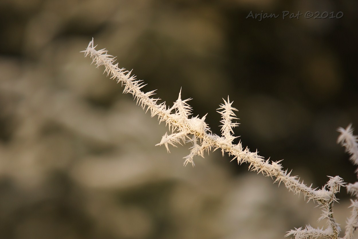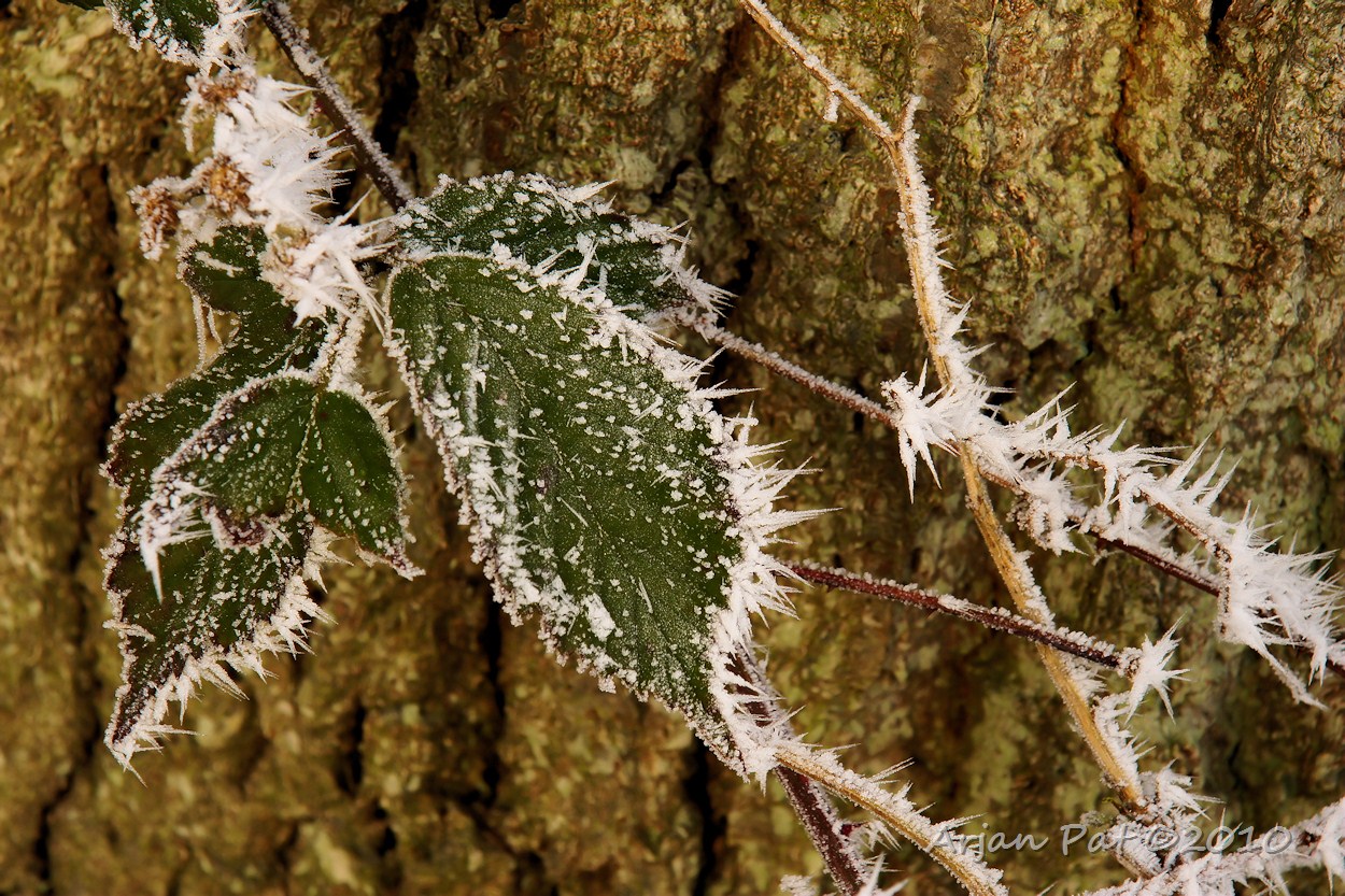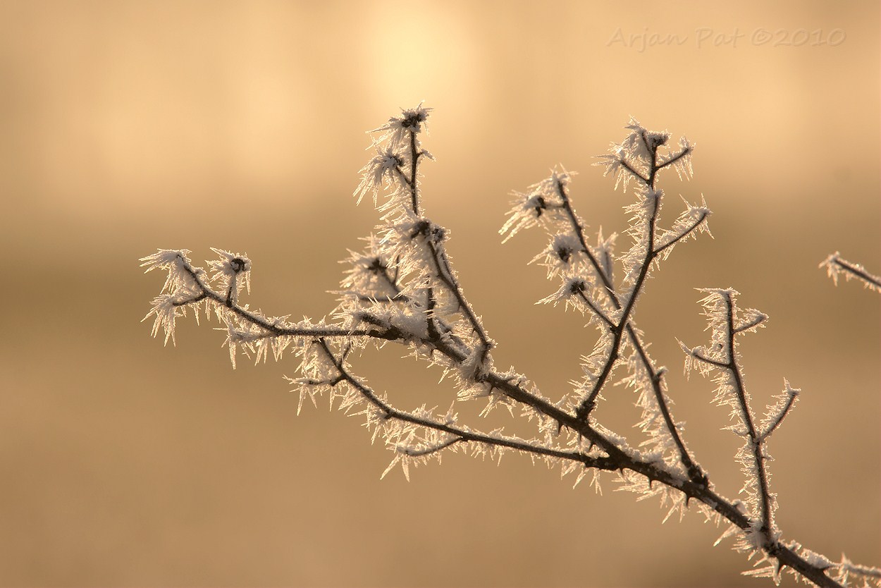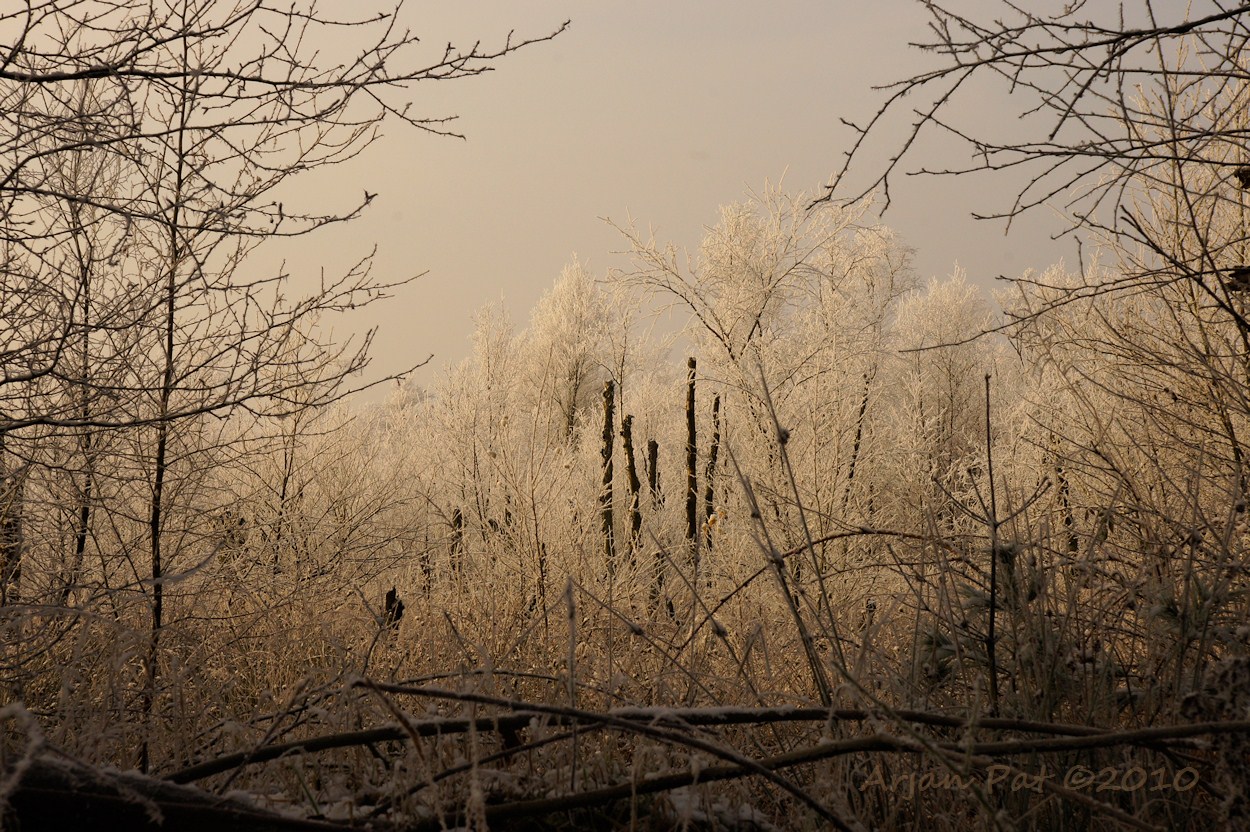 Het was zo'n -6°C toen de wandeling om ca 8:30h begon. Er zat veel rijp op de bomen, struiken, ... eigenlijk op alles. De zon had in het begin van de ochtend moeite om door de wolken heen te prikken. Laat in de ochtend liet de zon een goudgele waas op het landschap achter. Deze koude dag heeft echter wel een aantal warme plaatjes opgeleverd.