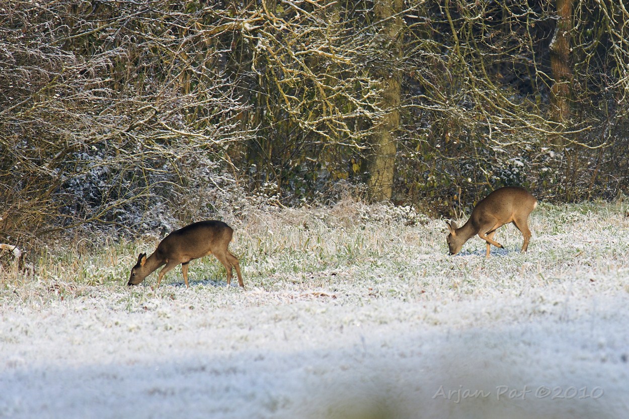 In totaal heb ik vandaag 245 foto's van reeën geschoten. De meeste van deze twee. Hiervoor heb ik wel 26 minuten op één en dezelfde plek gestaan (in de barre kou wel te verstaan;-)