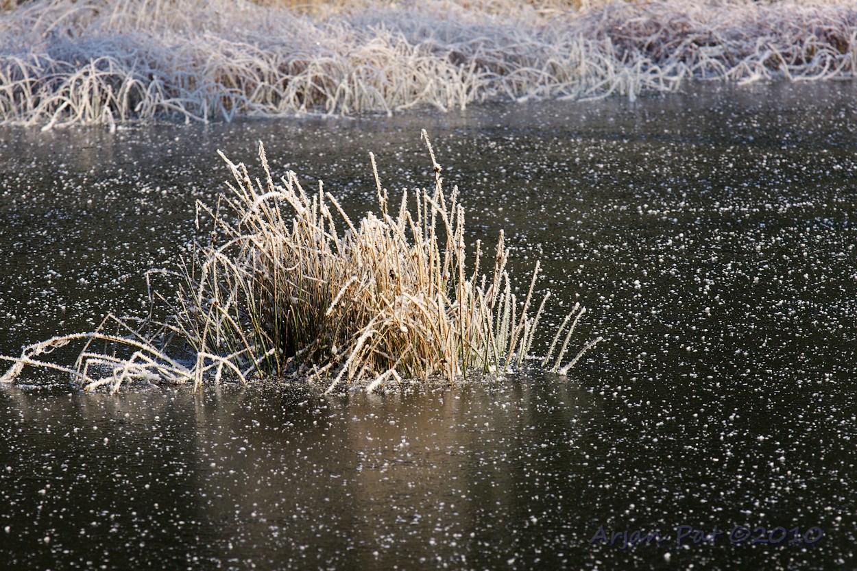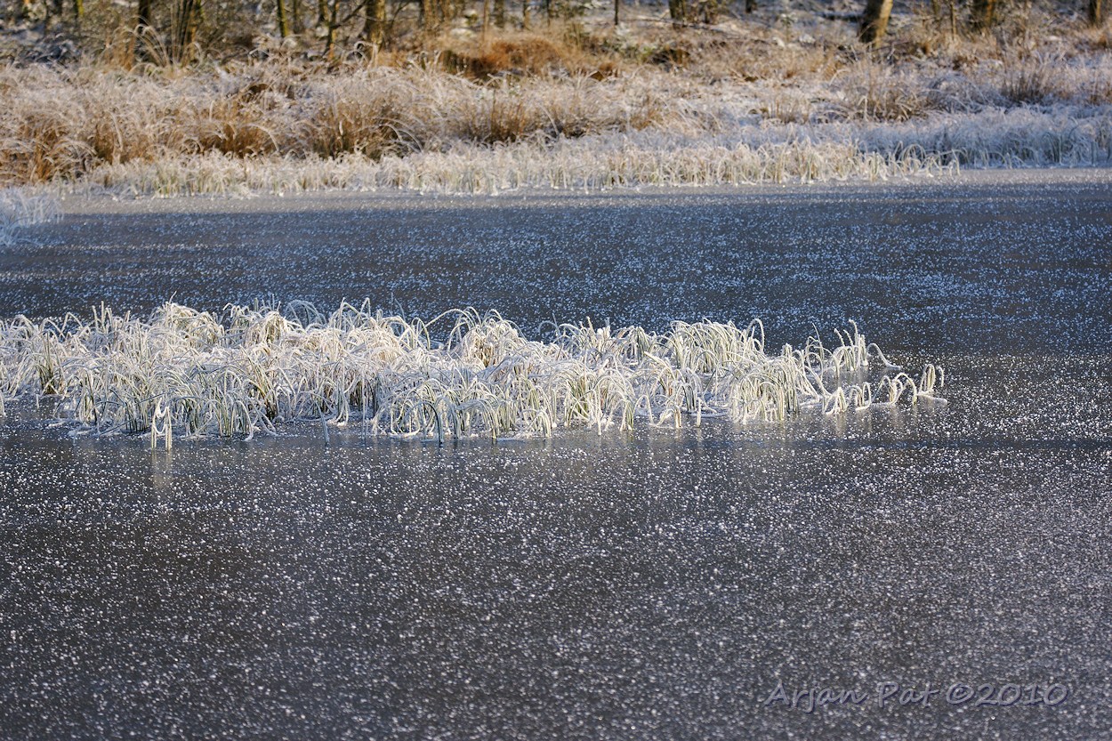 Even verderop was een ander vennetje, dat er mooi bevroren bijlag.