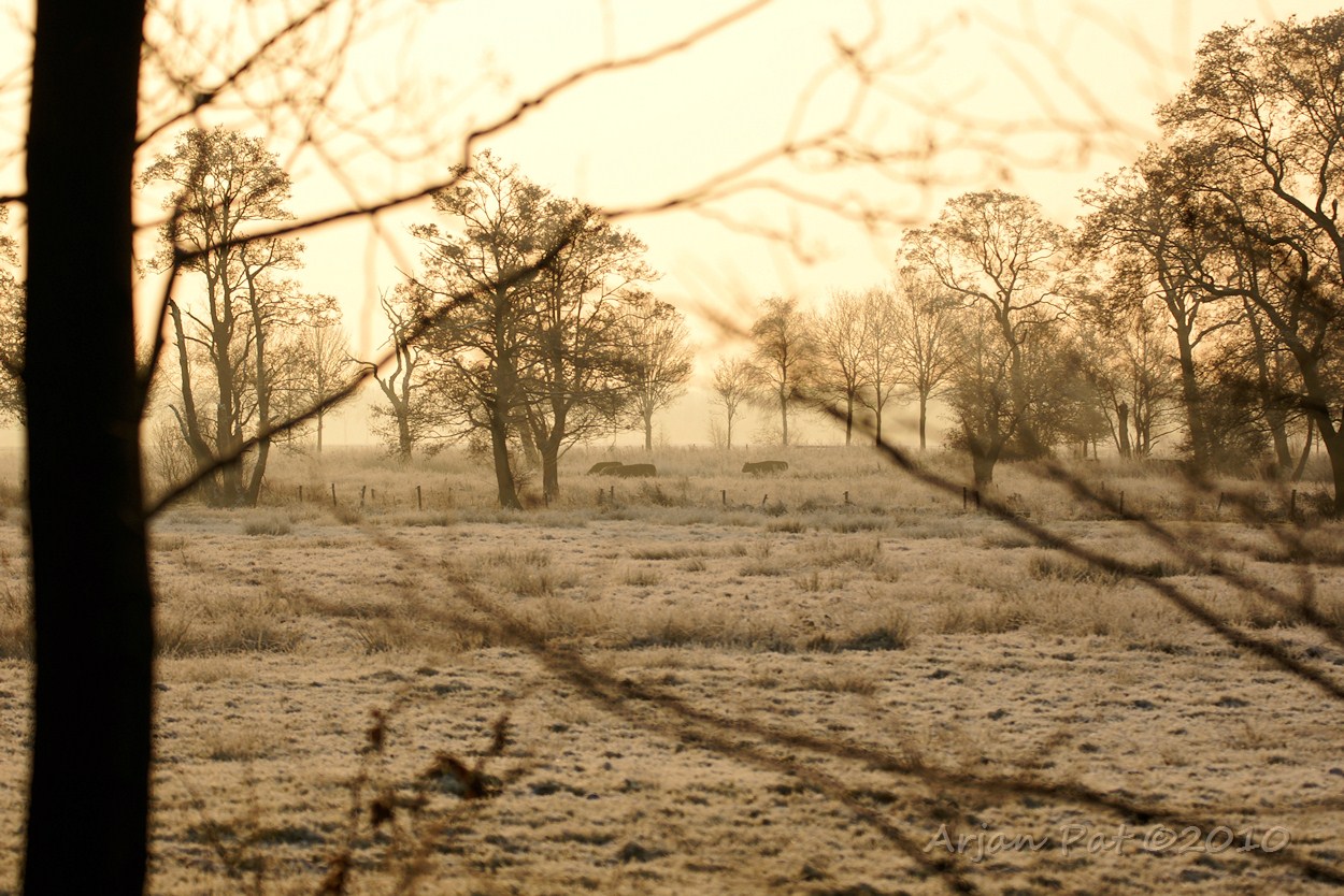 Weer een wandeling in de kou. Het vroor zo'n 5°C toen de wandeling begon, ongeveer net zo warm als gisteren. Toch voelde het nu kouder aan door de noordwestenwind. De zon scheen vandaag wel zo'n beetje de hele dag door. De sfeer was bijna net zo mooi als gisteren.