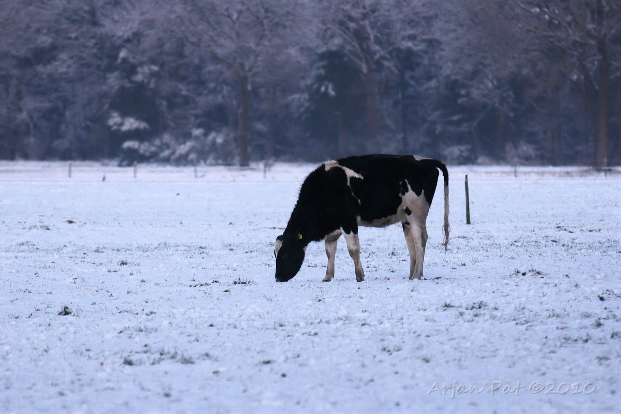 Staat er aan de andere kant een koe te grazen..... Zie je niet veel met deze kou.