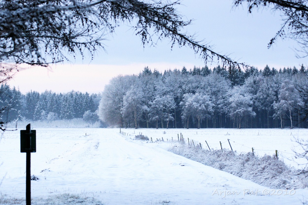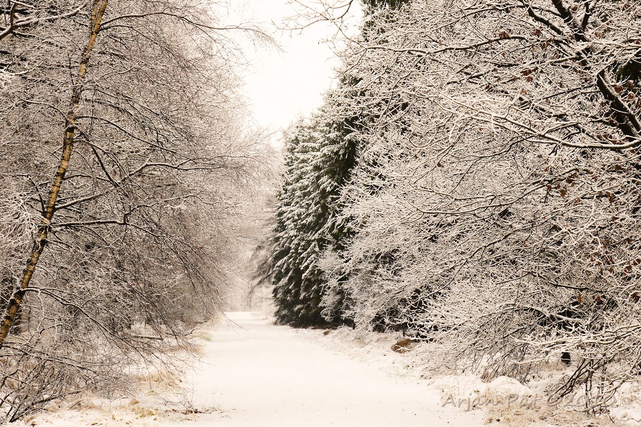 Het hele bos was wit en het is al flink aan het dooien. Later deze dag zou het ook nog gaan regenen; Nu nog maar even genieten van deze mooie wereld.