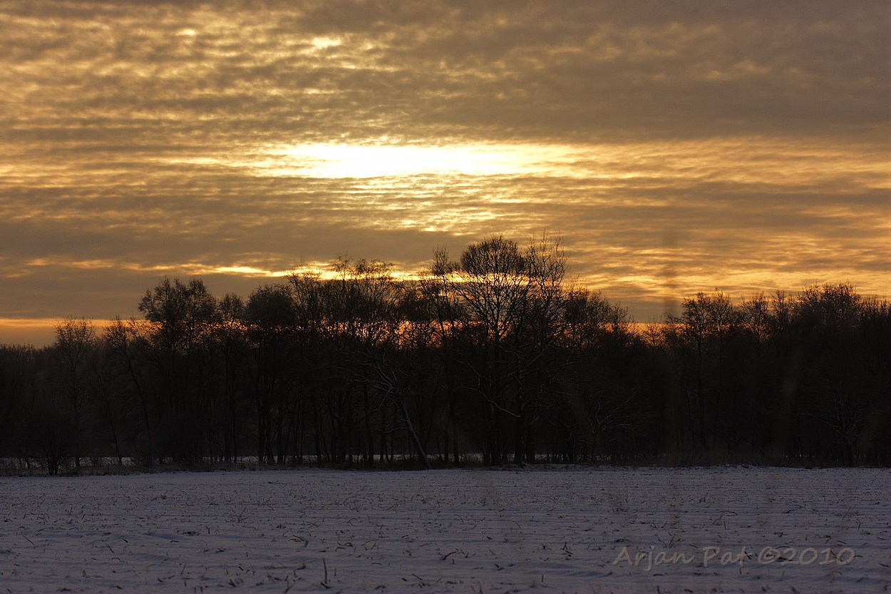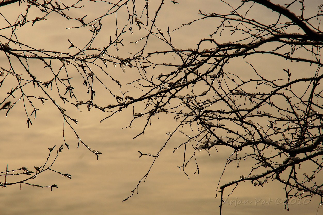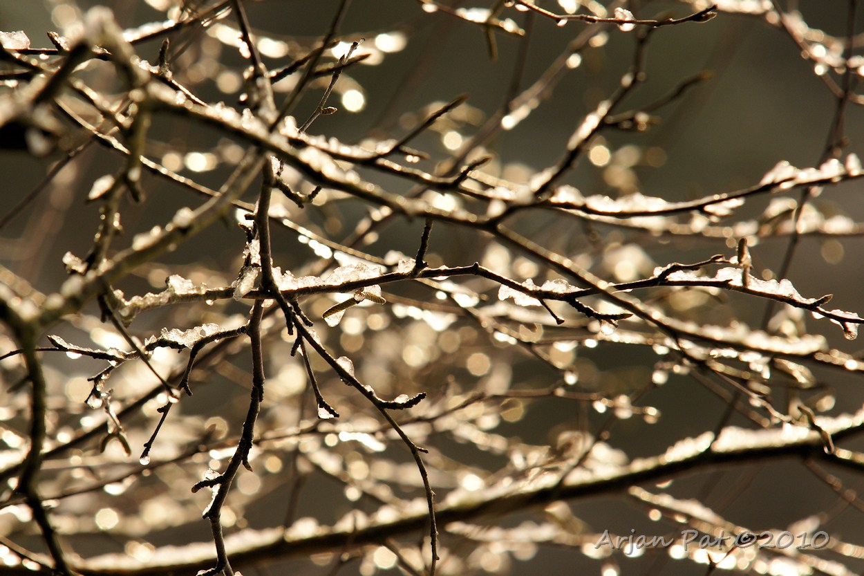 De sneeuw was de vorige avond gevallen toen het nog half dooi was. Later vroor het weer, waardoor de half gesmolten sneeuw 's nacht opvroor. Nu het weer dooide kwamen soms ware ijsklonten uit de boom vallen. M'n voeten werden steeds natter (en kouder) dus werd het tijd om naar huis te gaan. Misschien zondag weer....
