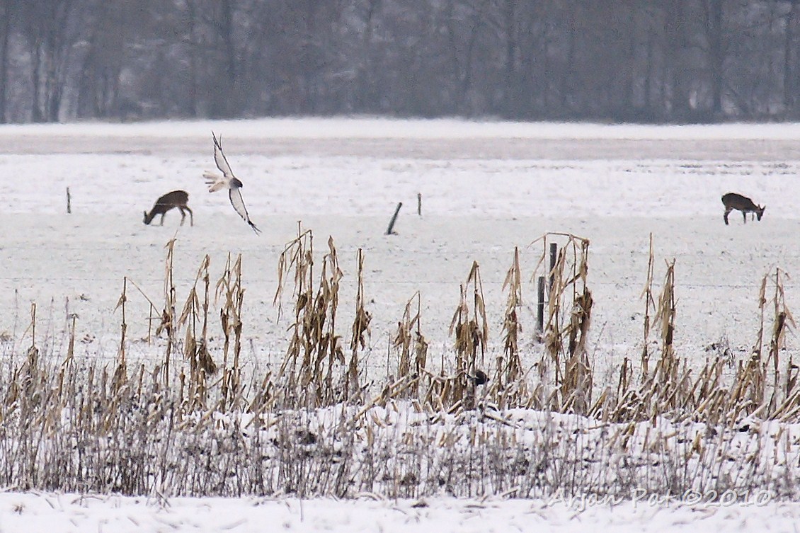 Leuk is dan ook weer, dat de reeën, op de achtergrond, rustig bleven doorgrazen.