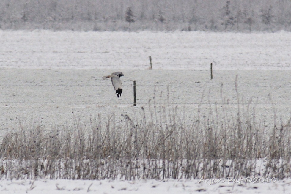 Ja, hoor, hij is er nog. Vorig jaar had ik hem al 2x gezien, maar niet duidelijk genoeg op de foto kunnen krijgen. Het kan ook nu wel beter, maar ik weet het nu helemaal zeker; het is zeker weten een Blauwe kiekendief! Zijn kop is echter wel wat donkerder dan je zou verwachten.