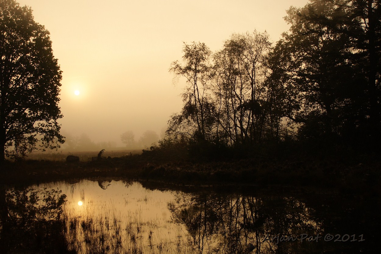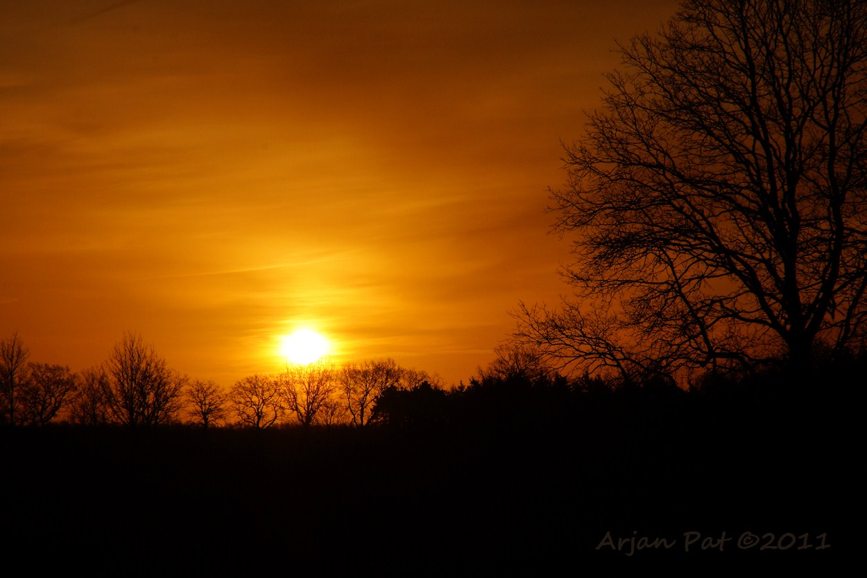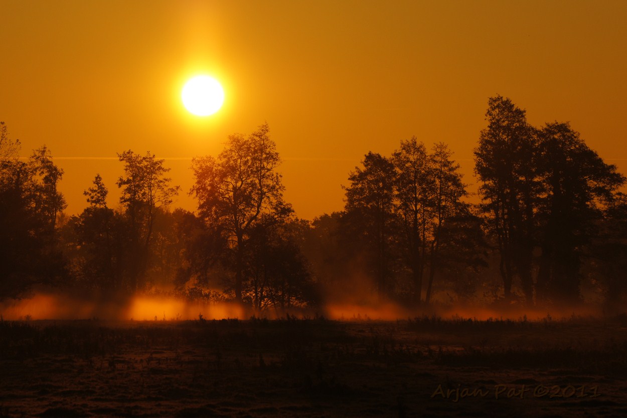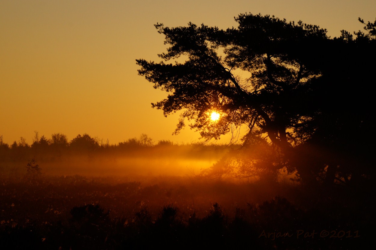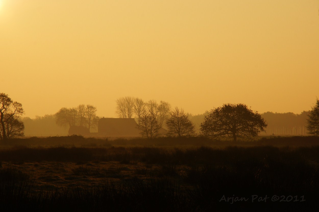 Westersche Veld van Rolde; Drentse landschap bij zonsopkomst.
