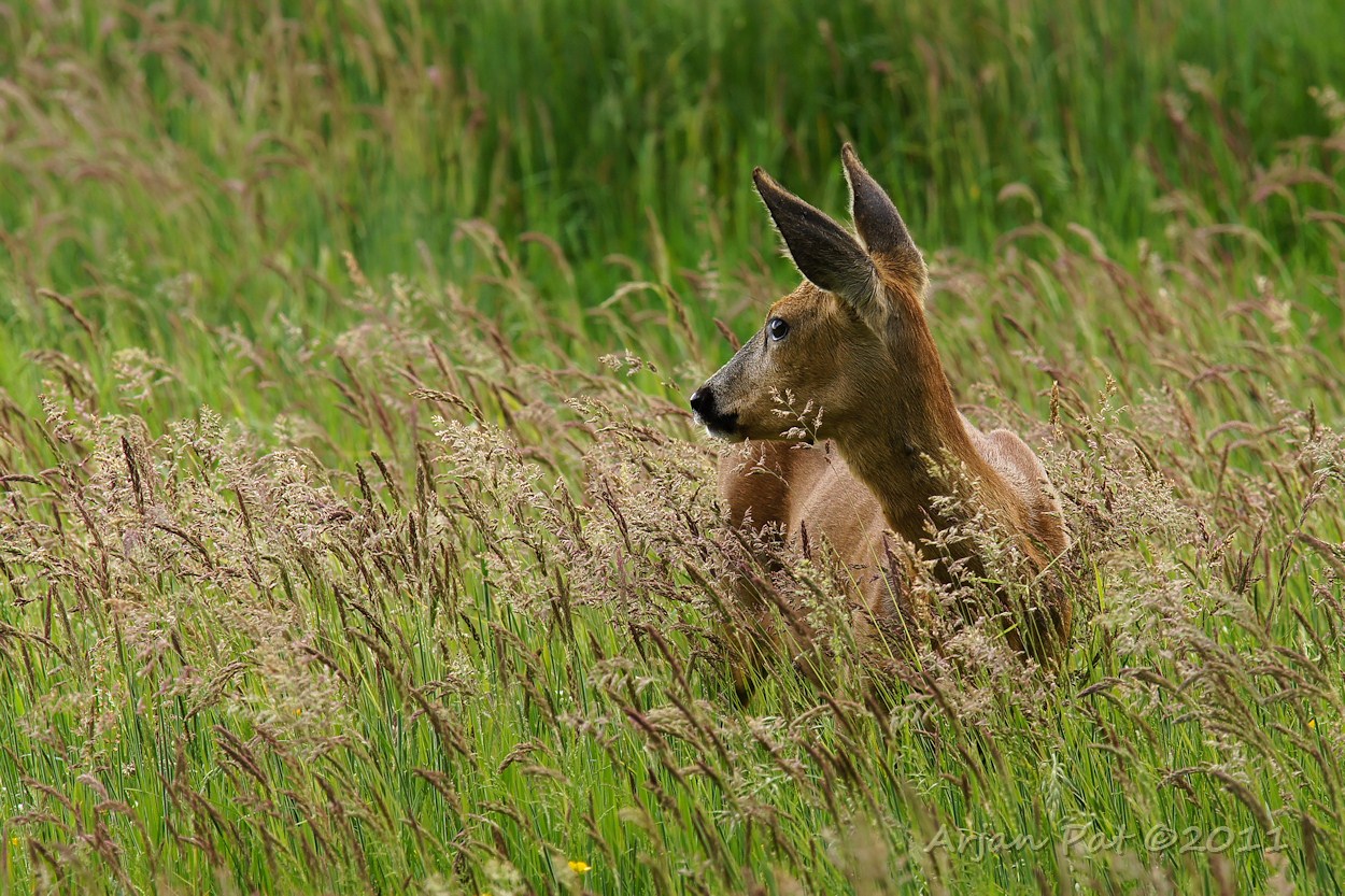 sprinkhaan, wespendief, reekalf en paddenstoelen.