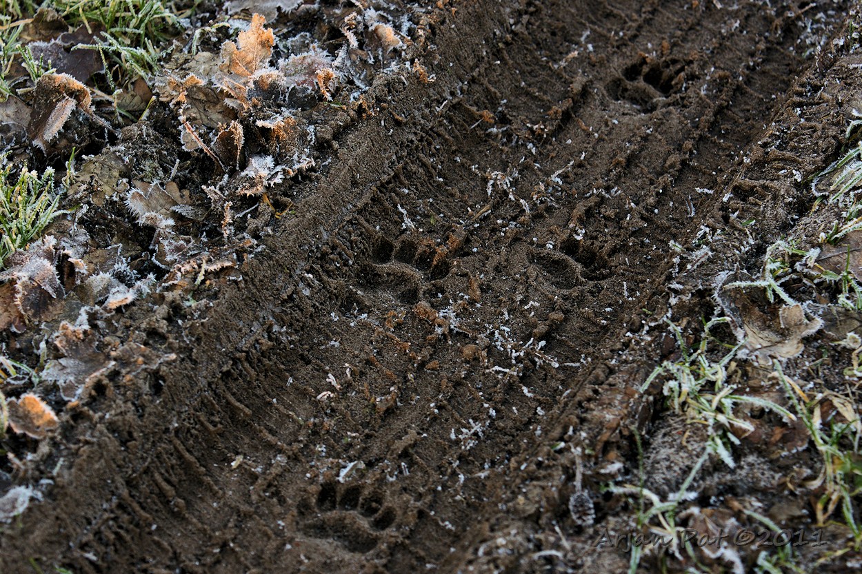 Zeer waarschijnlijk de sporen van een das (en een auto).