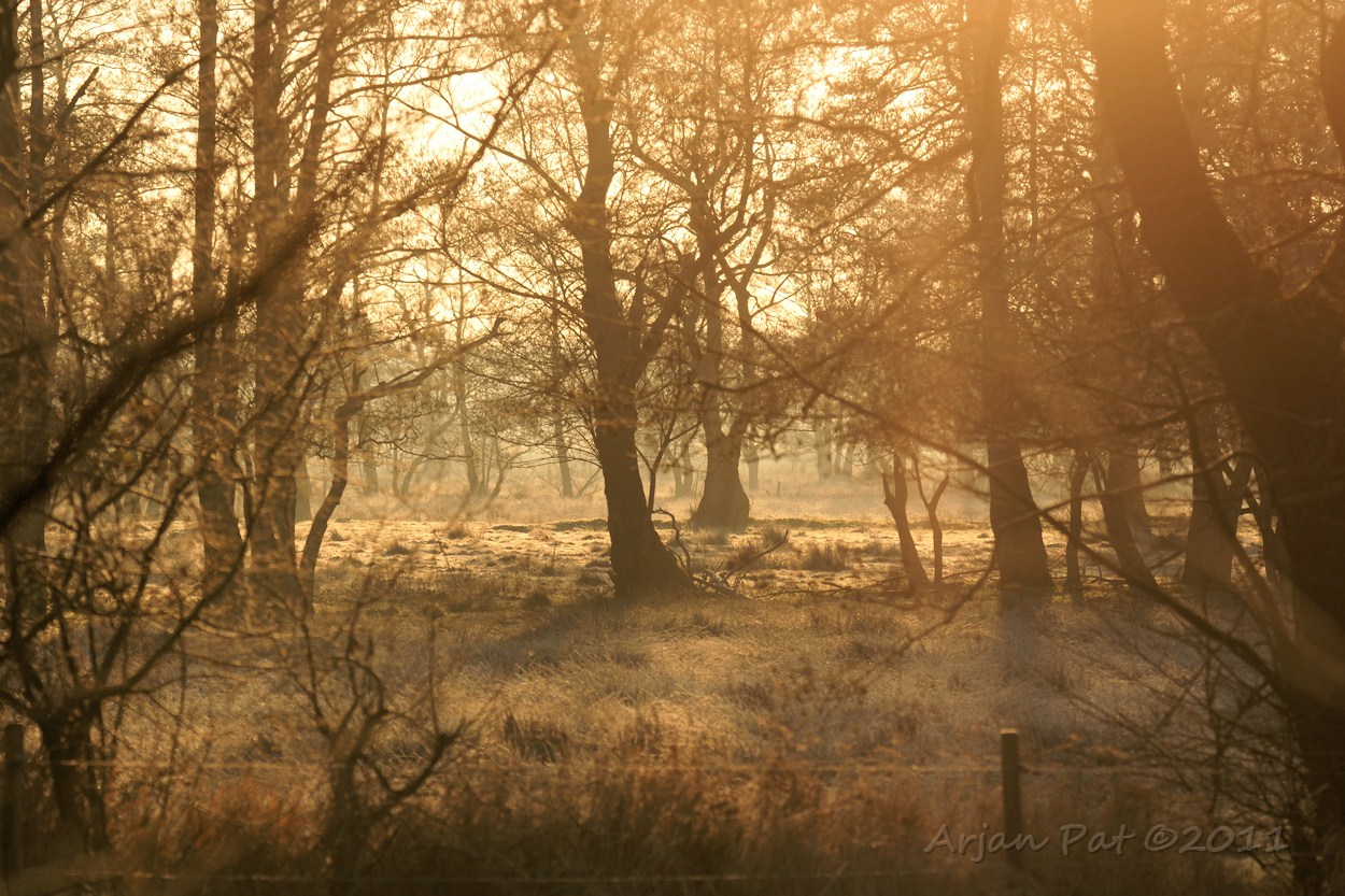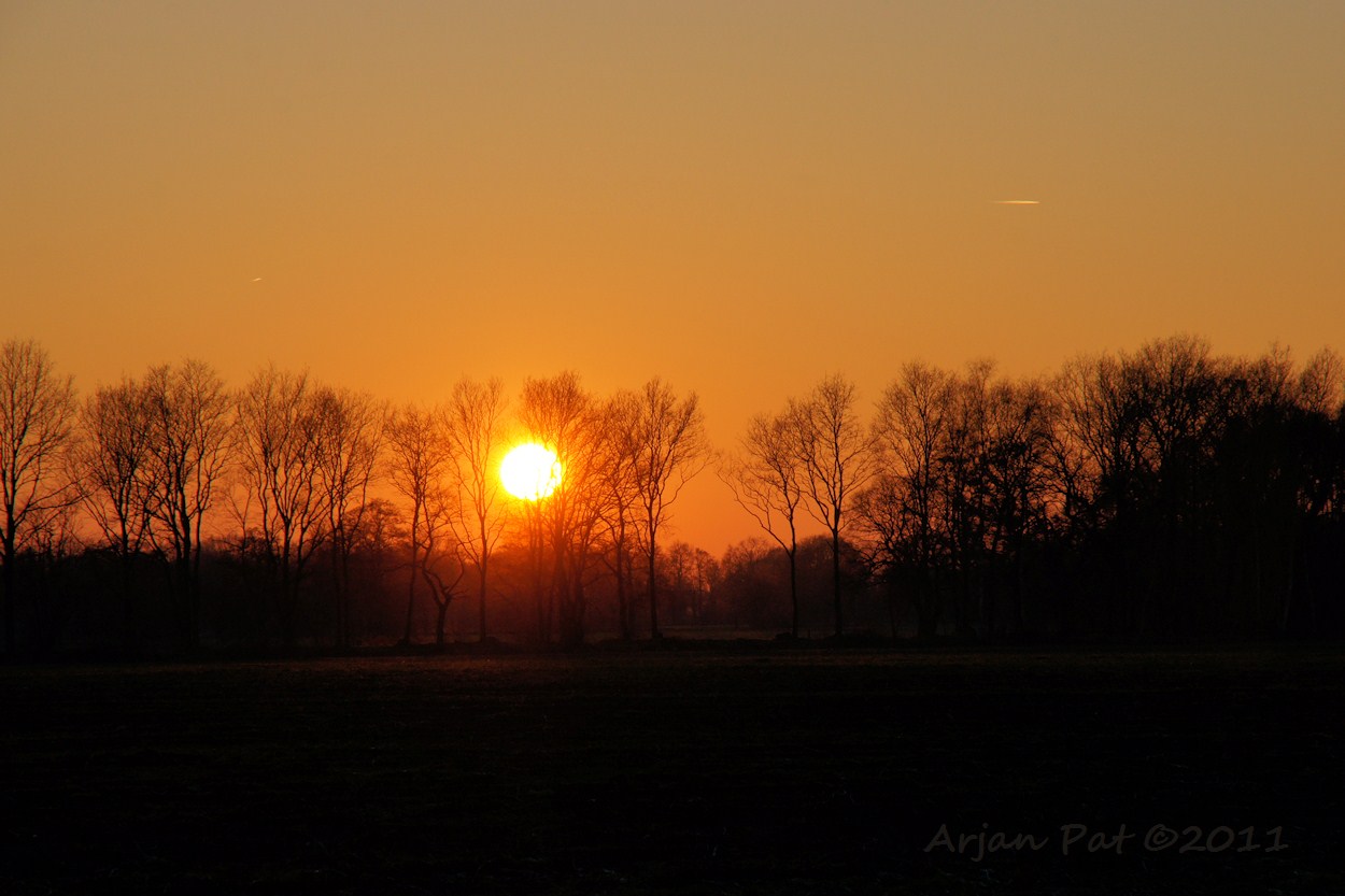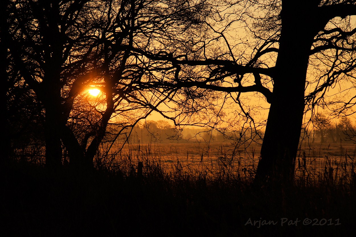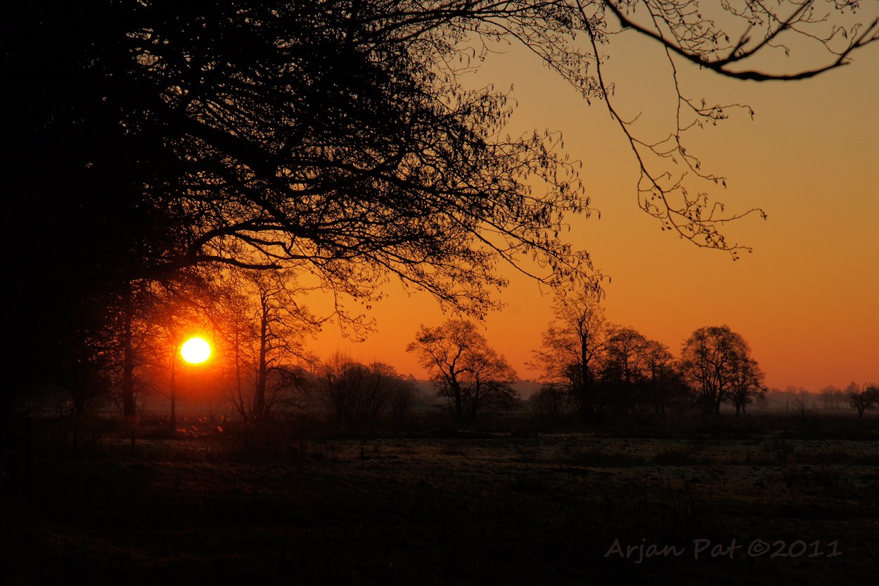 Nu even een paar plaatjes van de zon, die op een paar 'verwilderde' weilandjes beschijnt en daar een mooie oranje gloed achterlaat....