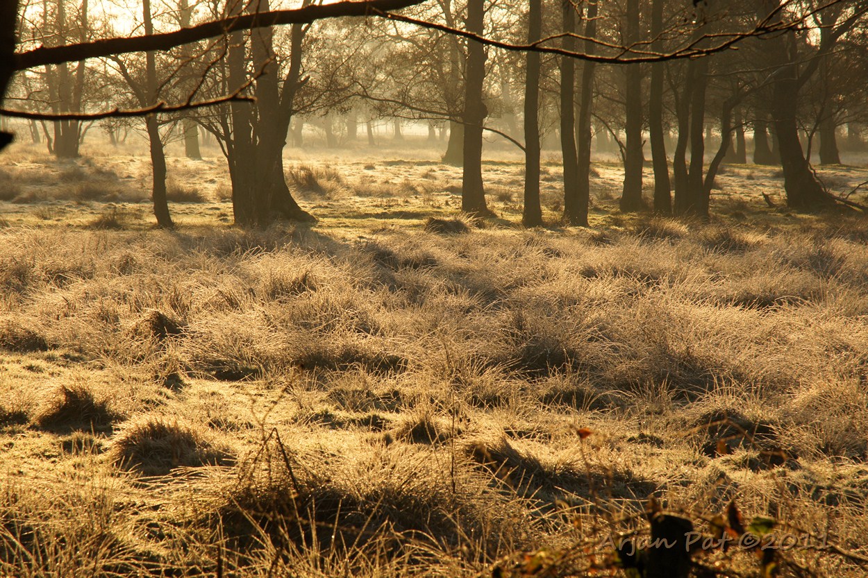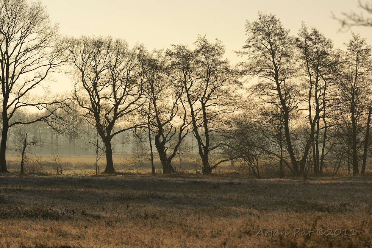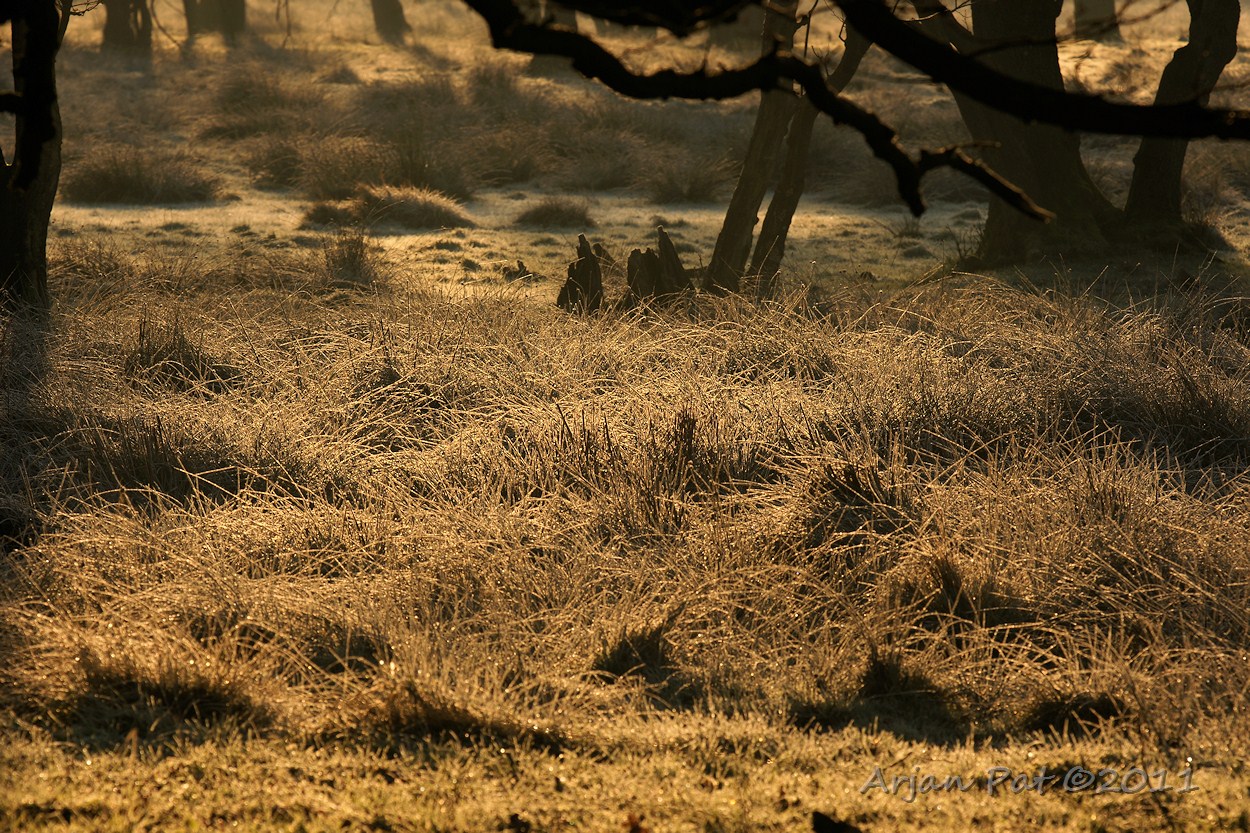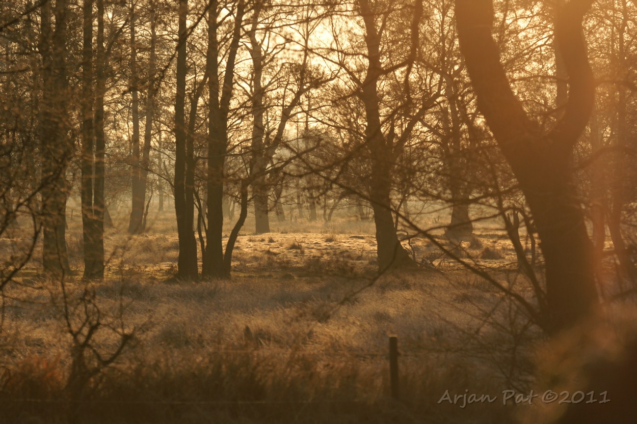 Nu even een paar plaatjes van de zon, die op een paar 'verwilderde' weilandjes beschijnt en daar een mooie oranje gloed achterlaat....