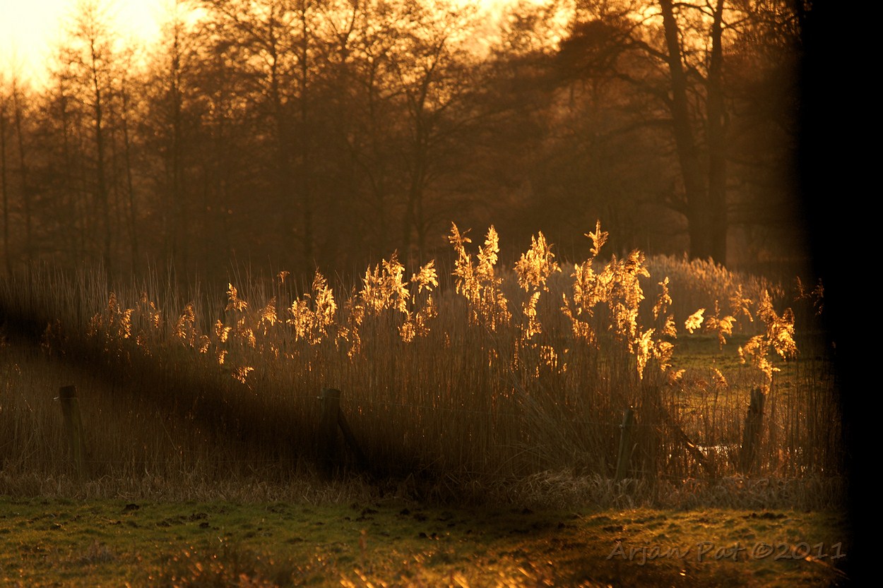 Deze rietpluimen werden extra belicht (opgelicht) door de langzaam ondergaande zon.