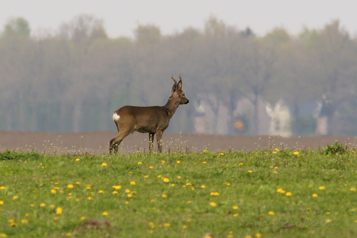 Eerder deze ochtend zag ik nog 2 mannetjes met een zogenaamde bastgewei. Deze bok heeft de basthuid al verloren.