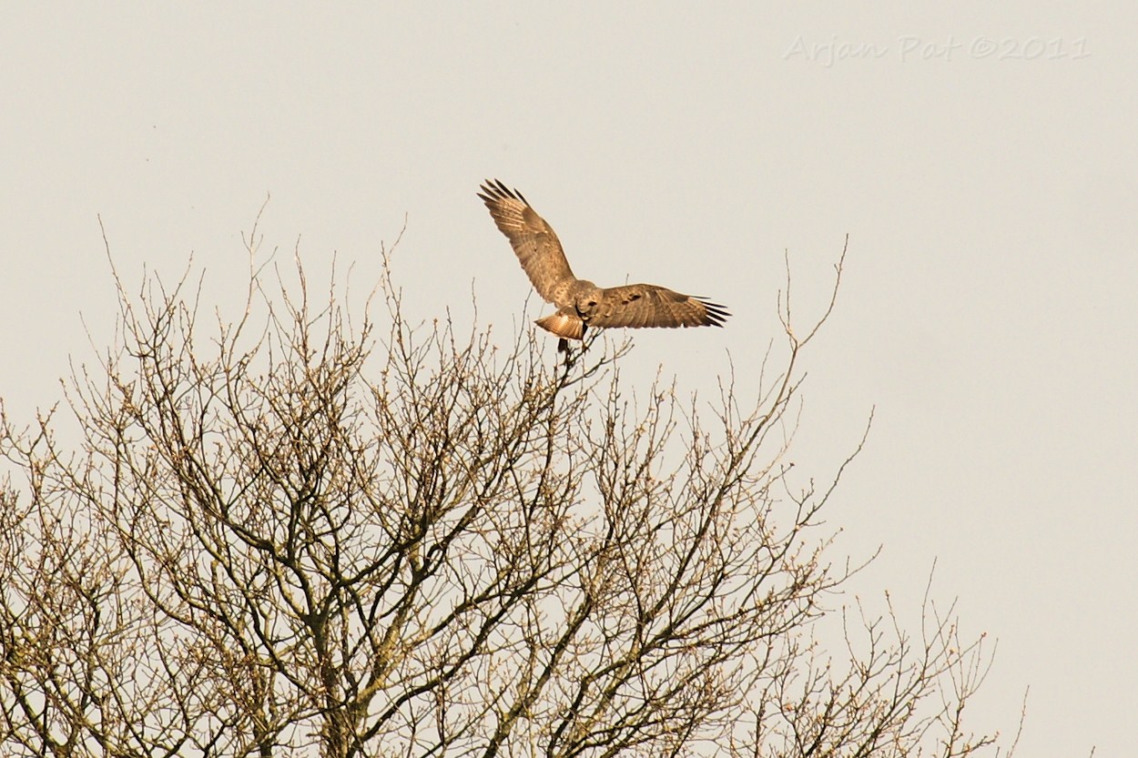 Buizerd landt in een boompje.