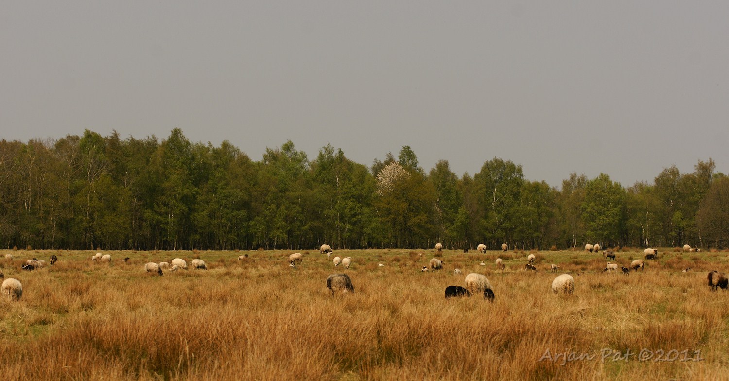 De andere kant op kijkende (en later op de dag) een aantal schapen.
