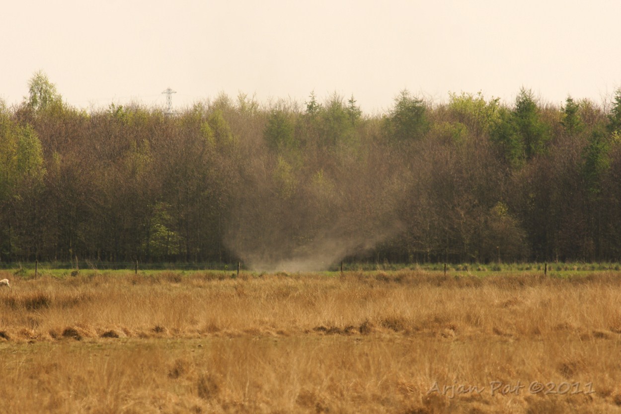 Op de terugweg was een windhoos te zien. Kort ervoor was het nog een mooie slanke slurf.