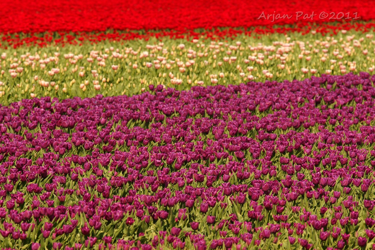 Aan het begin/eind van de wandelroute lag een akker vol met bloeiende tulpen.