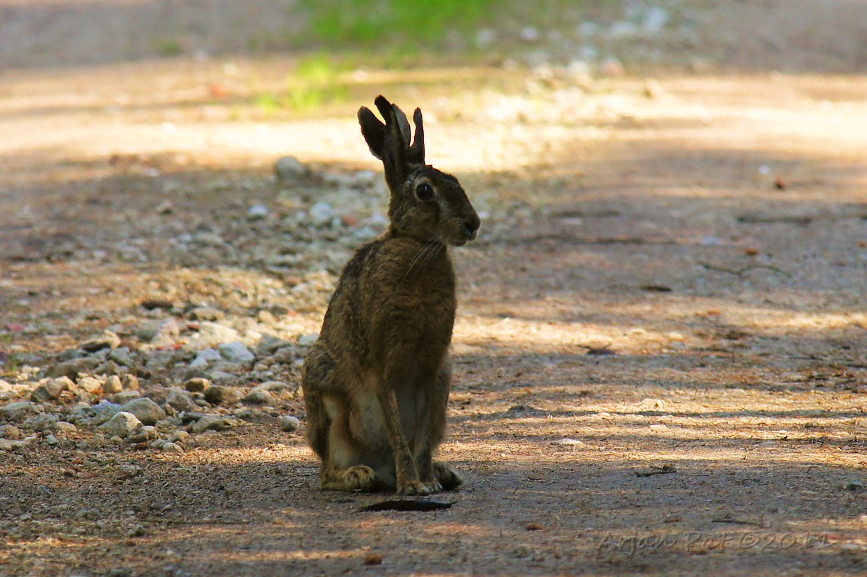 Het lijkt wel of deze haas een paar horentjes heeft. De haas moest, net als ik, zich eens flink achter de oren krabben.