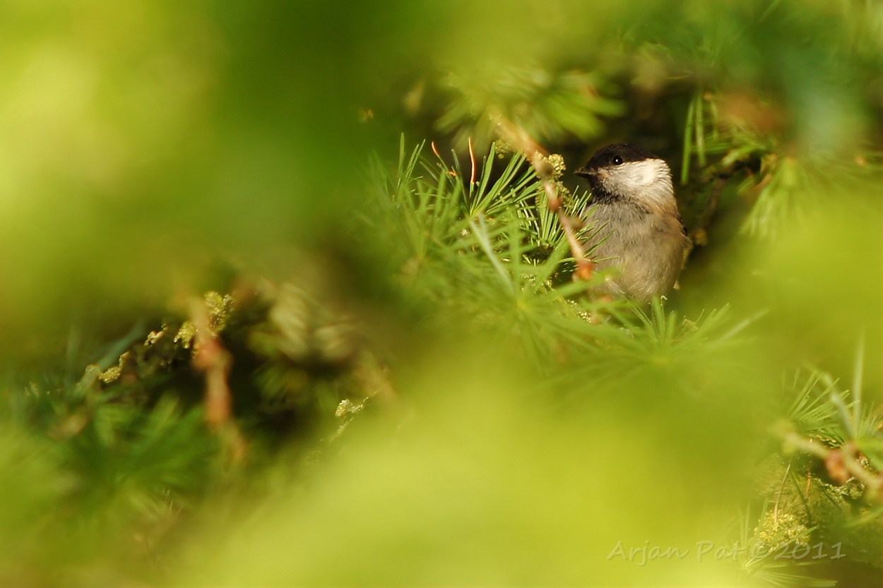 Kan niet goed zien of dit een zwarte mees of een matkop is. Met al dat blad zijn de vogels een stuk moeilijker te fotograferen dan een paar maandjes geleden.