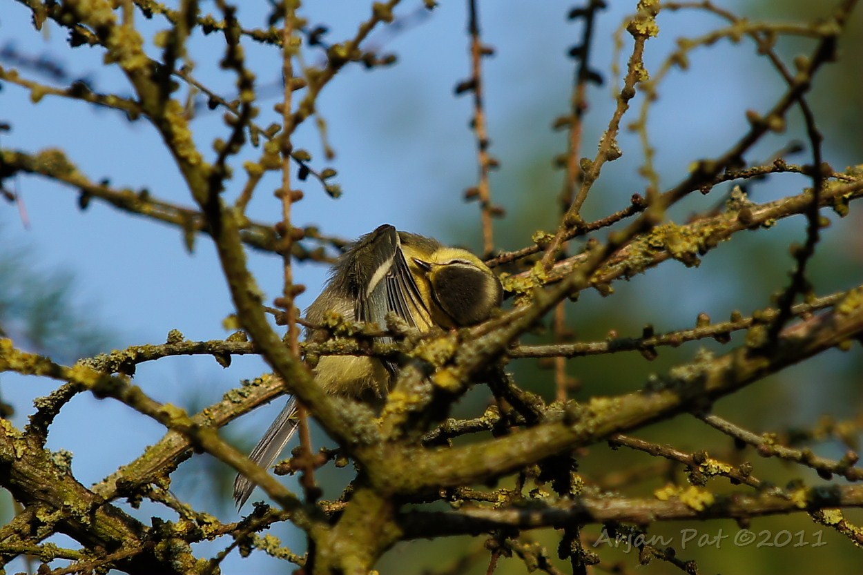 (Is bij een pimpelmees inderdaad moeilijk te zien)
