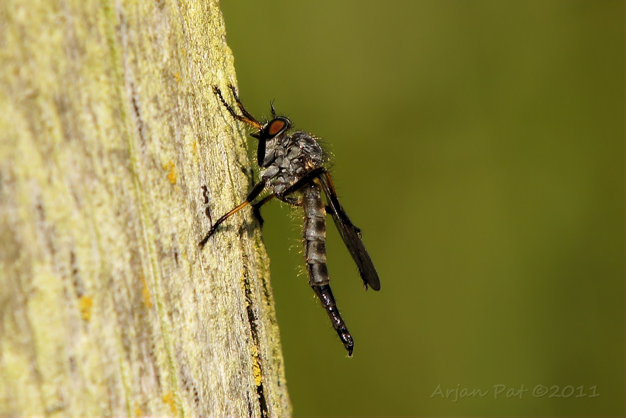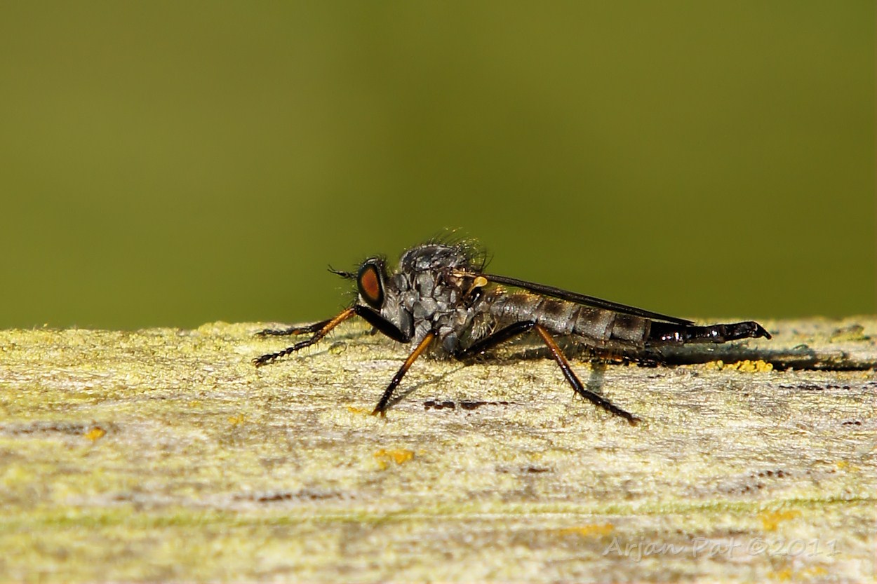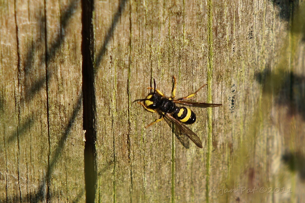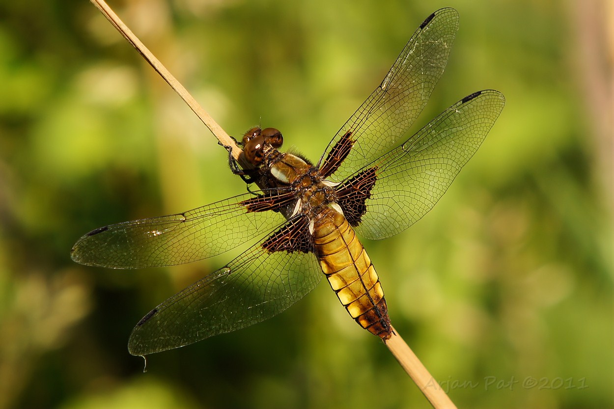 Maakt z'n vleugeltjes schoon met z'n achterpoten.