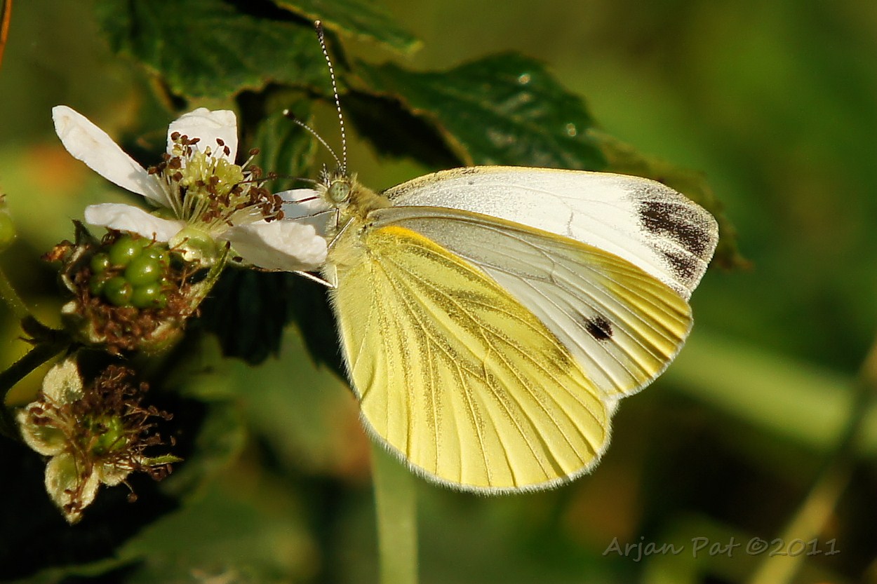 Weer zo'n raar geval; combinatie van een klein geaderd witje en een citroenvlinder?