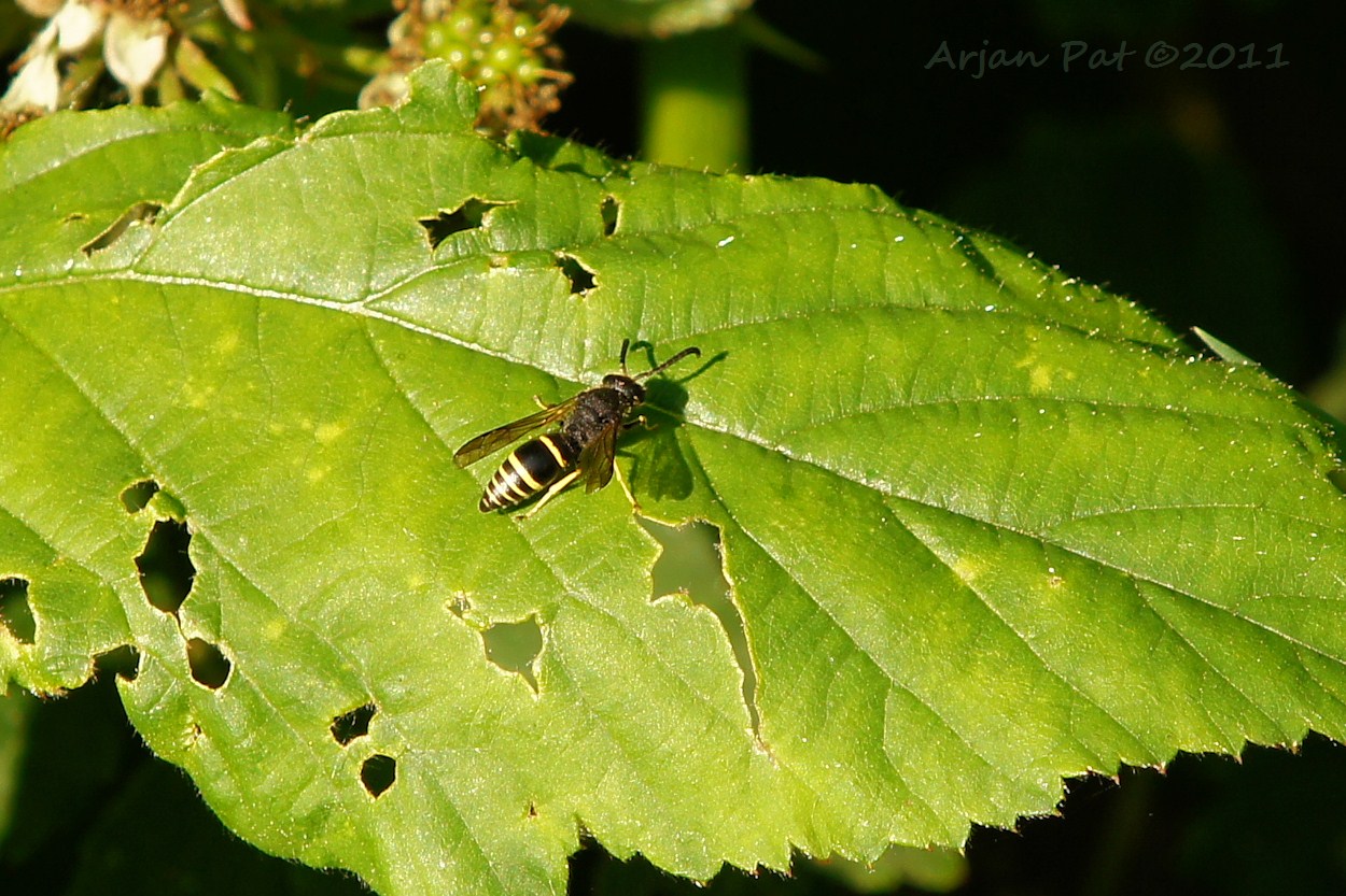 Wat voor soort muurwesp dit precies is durf ik niet te zeggen. (Misschien is het geeneens een muurwesp, want ik heb in het bos geen muur gezien ;-)