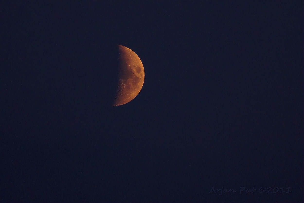 Aan het eind van de wandeling was het helemaal donker geworden. Wat je dan nog op de gevoelige plaat kunt vastleggen is deze belichte maan.