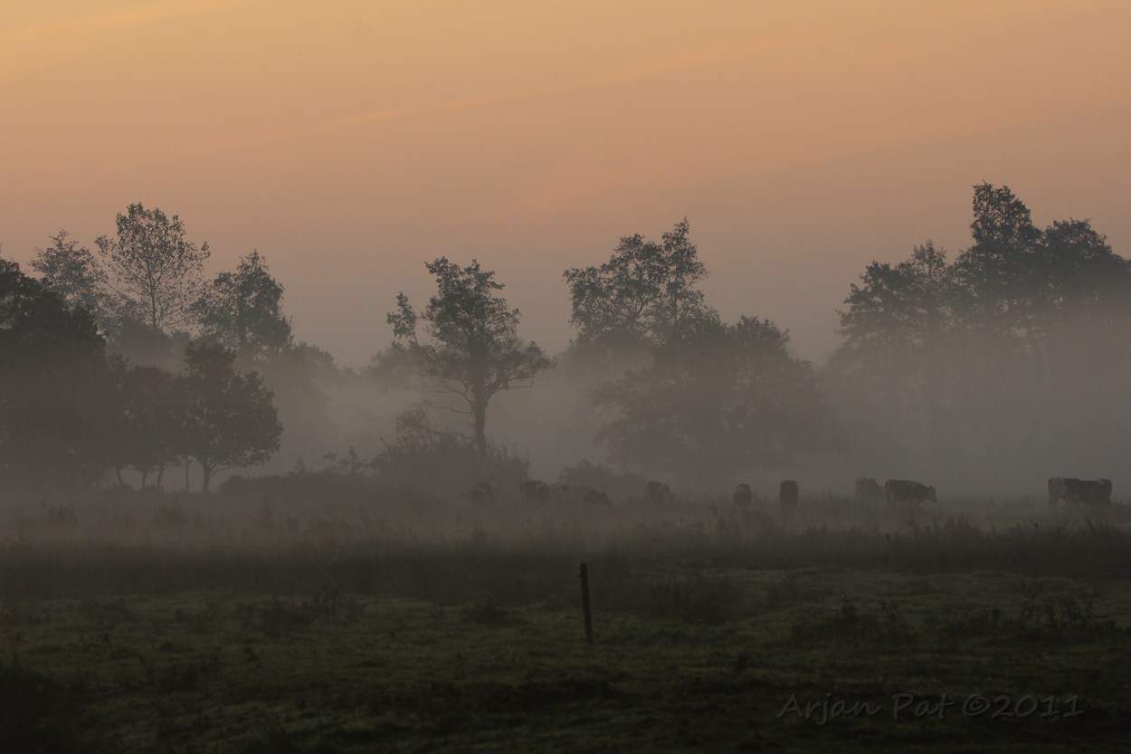 Voordat de zon opkwam, was het op sommige plaatsen behoorlijk mistig.