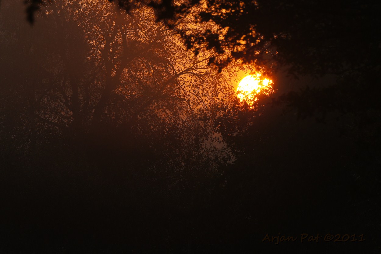 Als je zo tegen de zon inkijkt lijkt de wereld extra mistig en wazig.