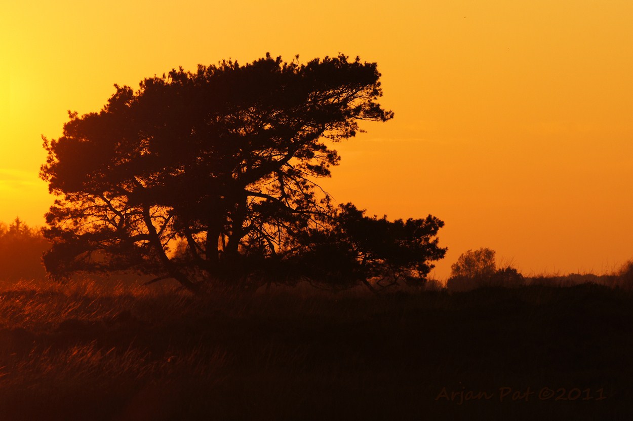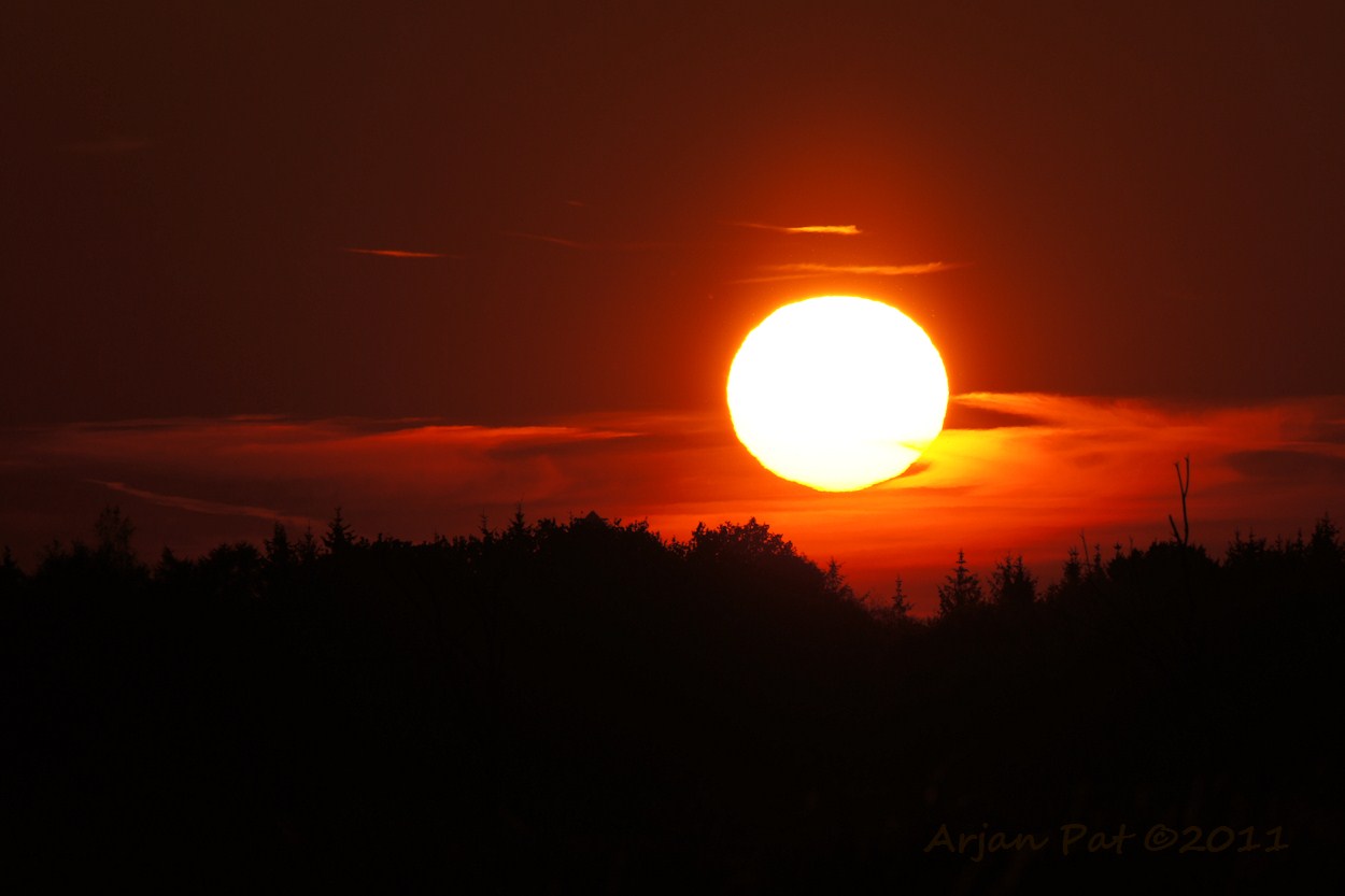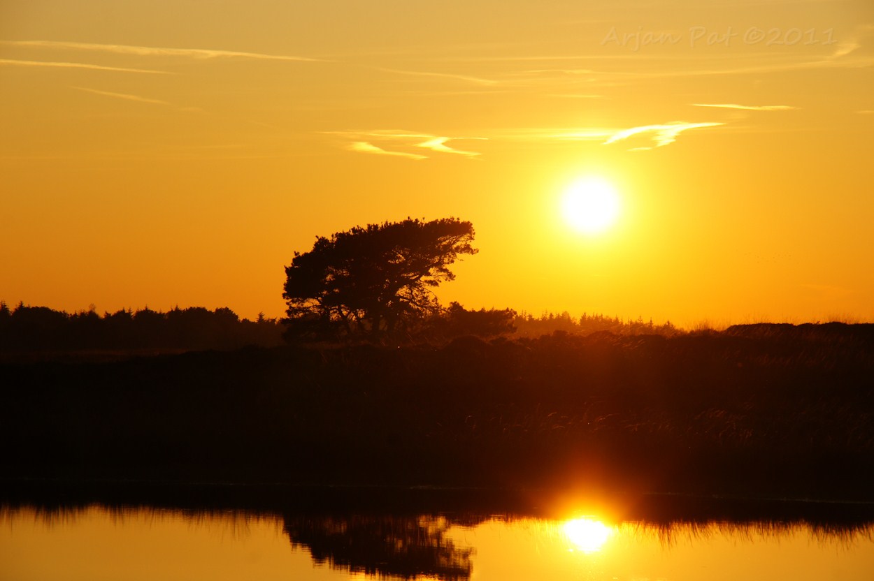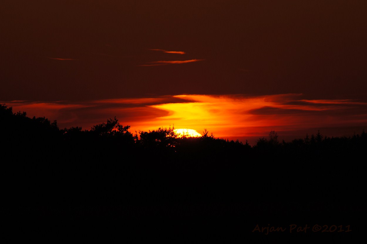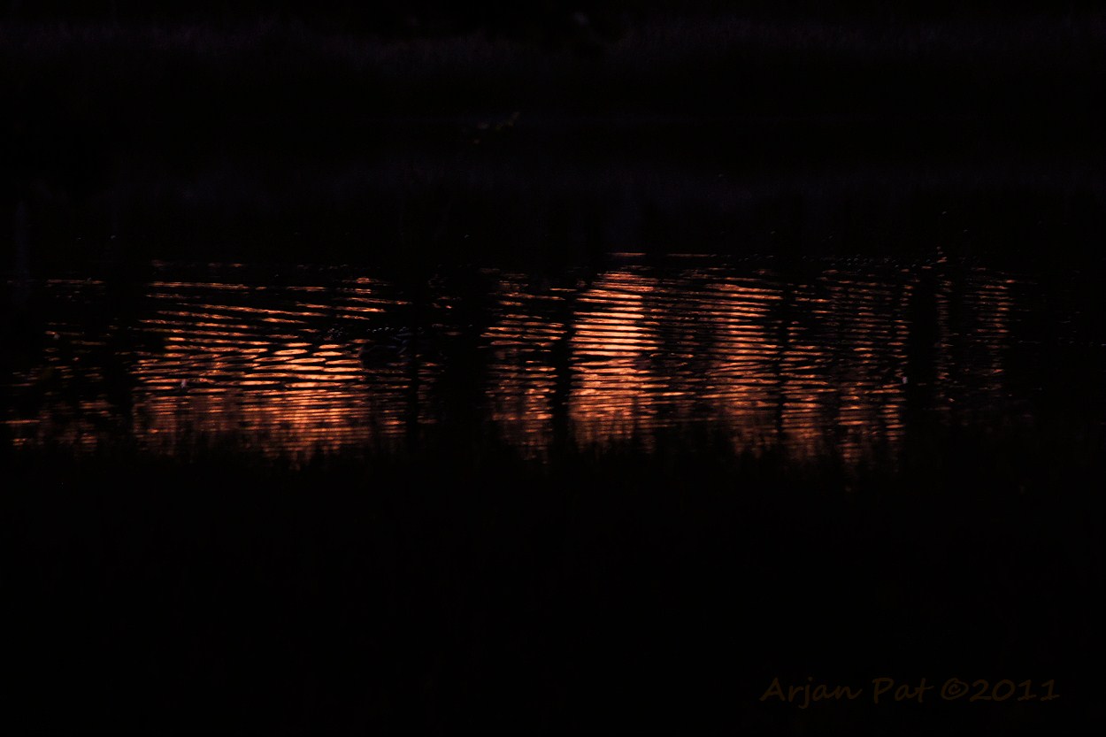 De zon was allang ondergegaan, maar in een bosvennetje was nog een rode weerschijn, van tussen de bomen, waar te nemen.