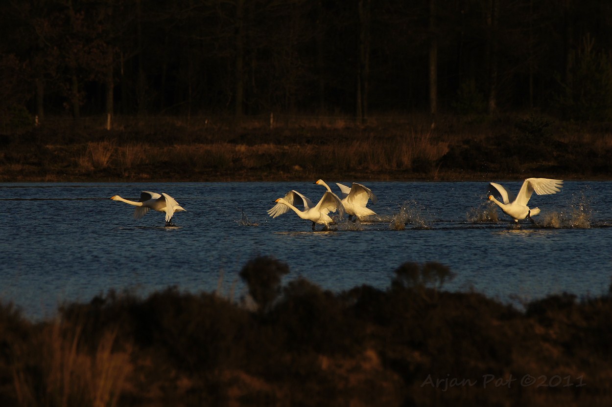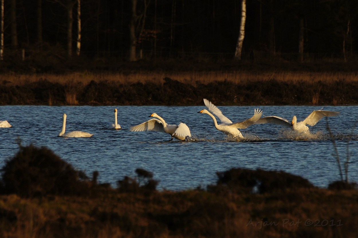 Landende wilde zwanen en ..