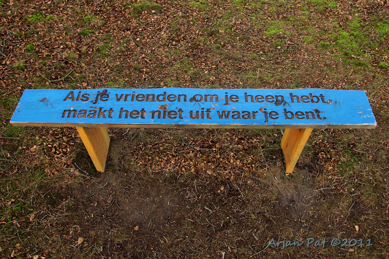 Op dat bankje stond een wijze spreuk: