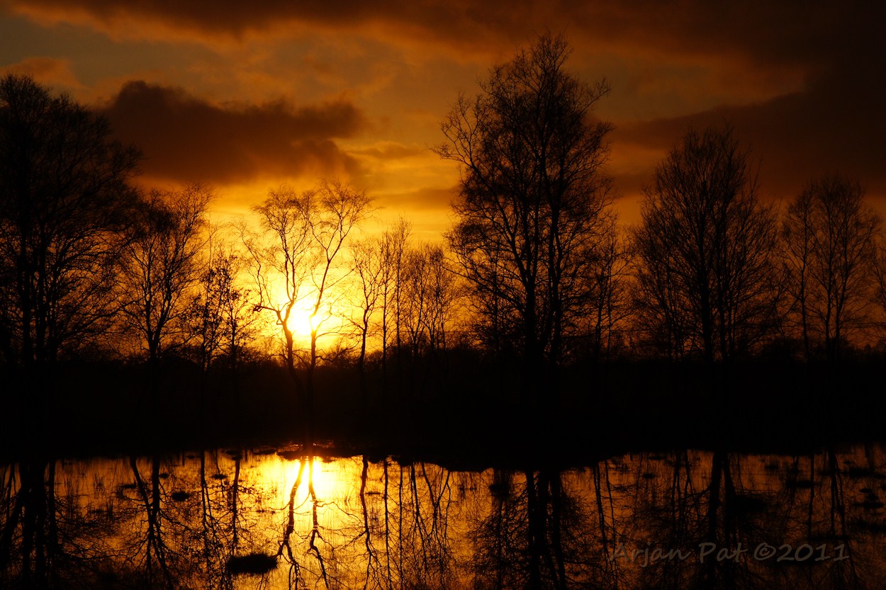 Het einde van het wandeljaar 2011 zit er weer op, met een mooie zonsondergang aan de rand van een klein vennetje.