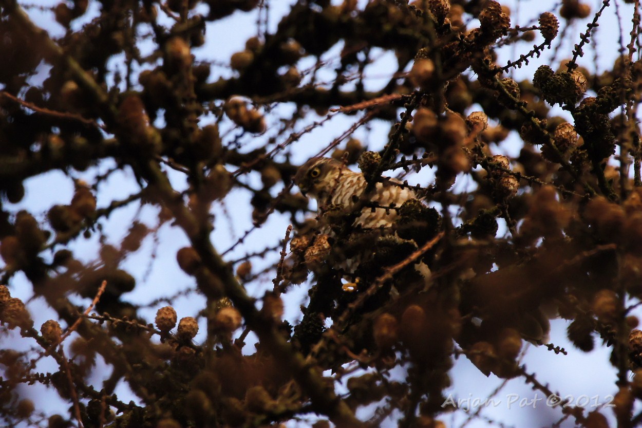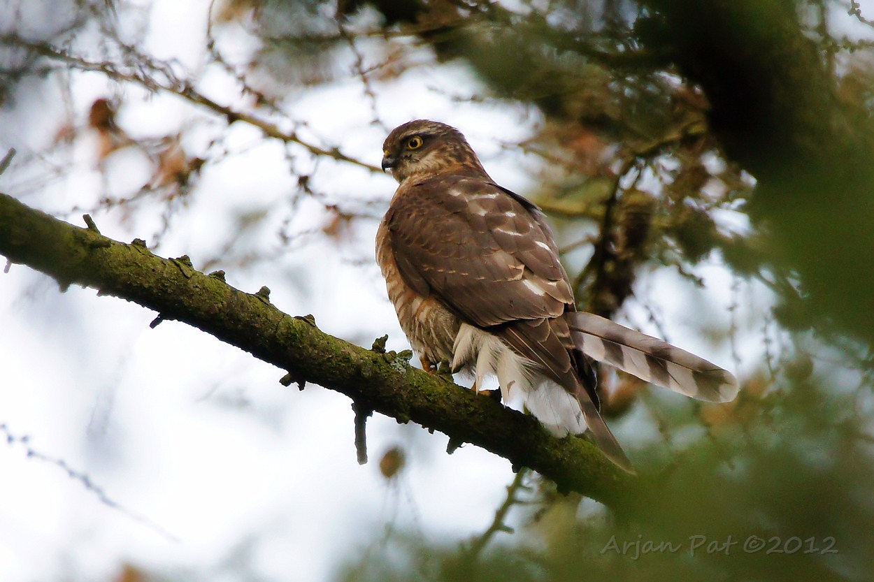 De sperwer vloog snel weer verder, maar bleef toch nog heel eventjes poseren op deze tak.