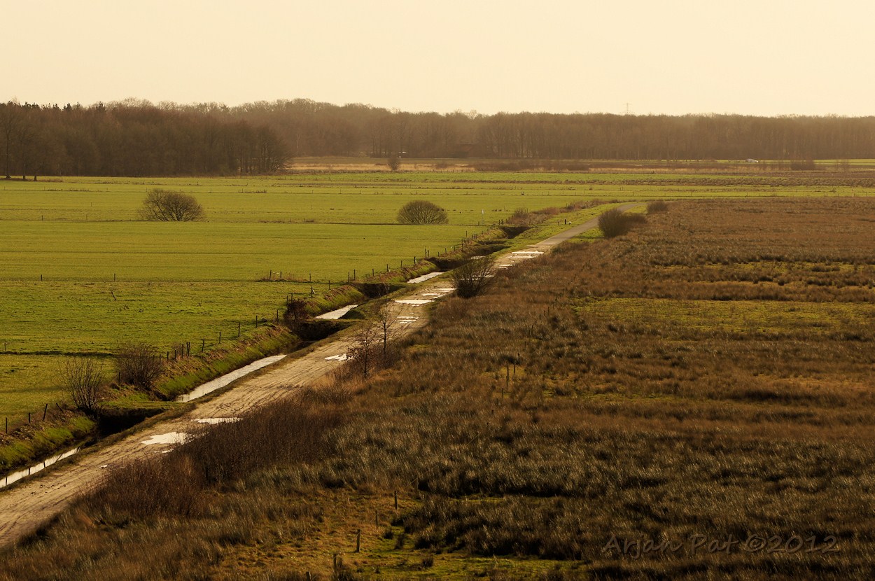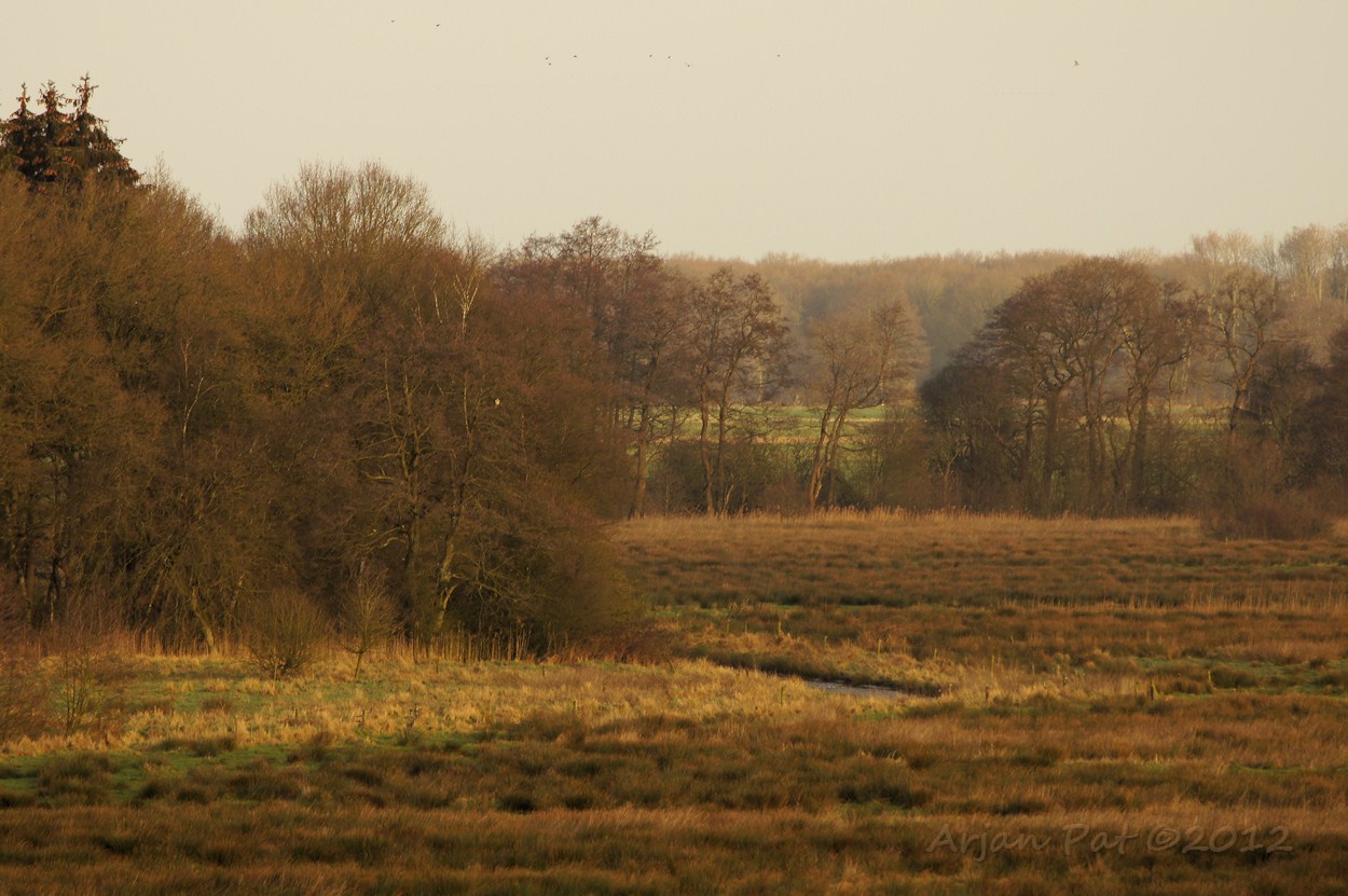 Dan nog maar een paar plaatjes van de omgeving; hier boswachterij Hooghalen. Dat witte stipje daar in die bomen? Dat is nou een buizerd!