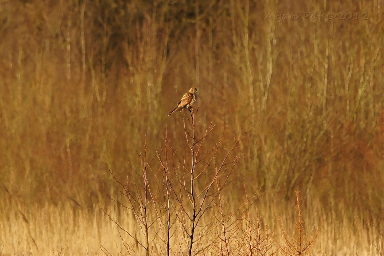 Amper te zien, maar hier zit een torenvalkje op de uitkijk. (nee, niet in de uitkijktoren)