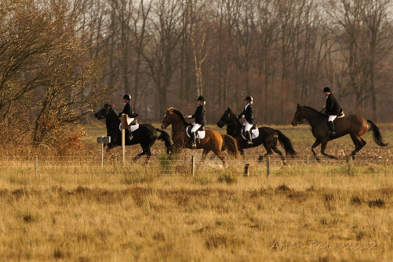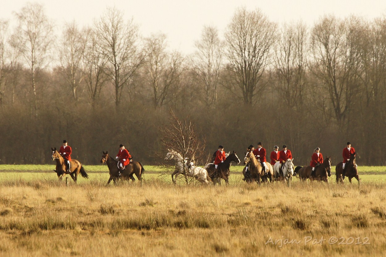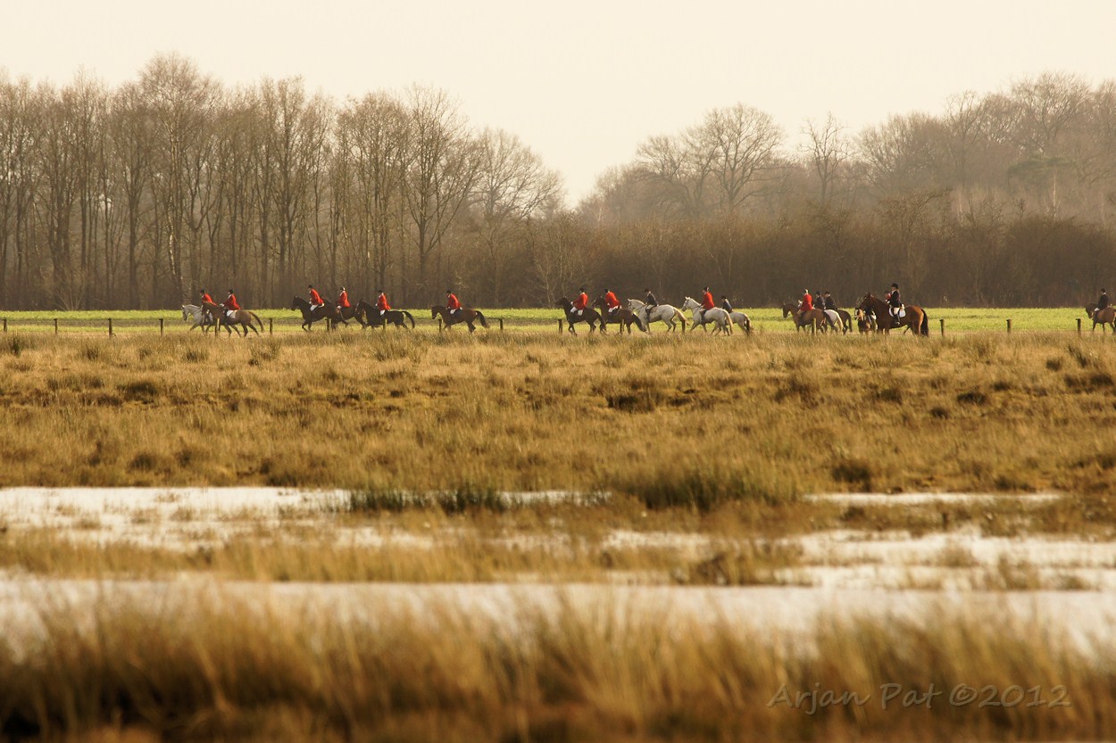 Ik was net te laat om het hele spektakel te aanschouwen, maar een hele koppel honden en ruiters trokken in de verte voorbij. Het geluid van de honden was als die van een koppel bloedhonden, die achter een prooi aanzaten.