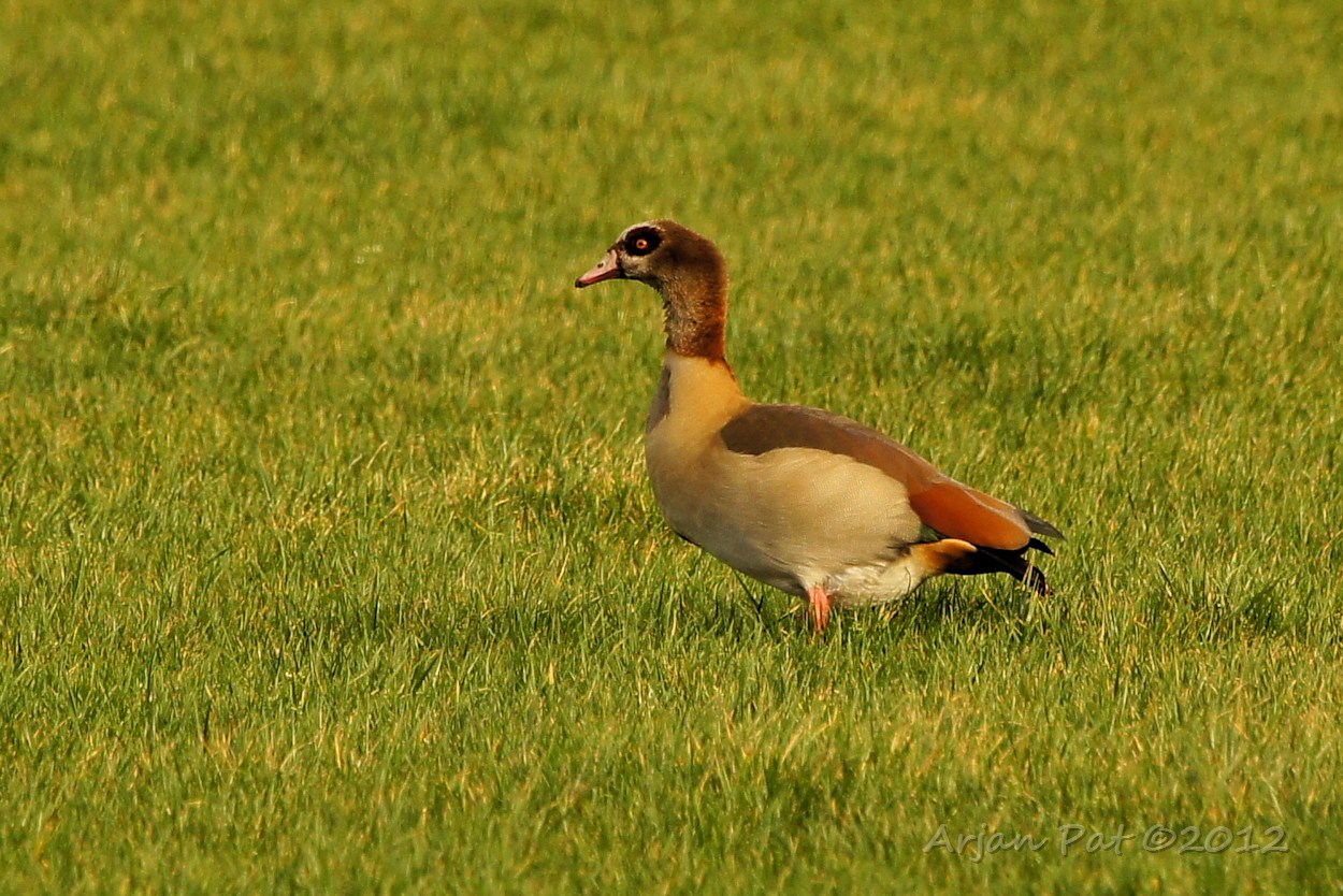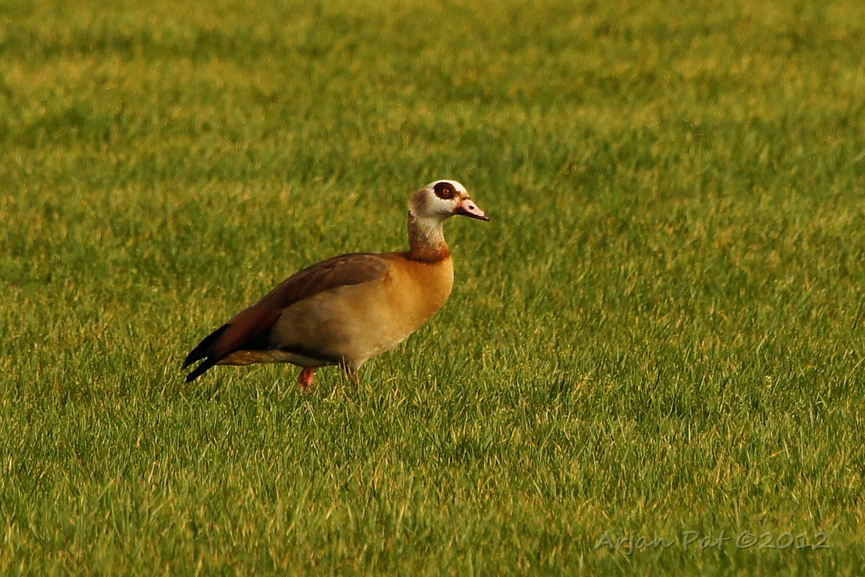 Nu was ik, door al dat lawaai aangetrokken, ook alweer op de terugweg. Toen kwam ik dit koppeltje nijlganzen tegen. Ze waren niet heel erg schuw, maar wel langzaam weglopende om mij te ontwijken.