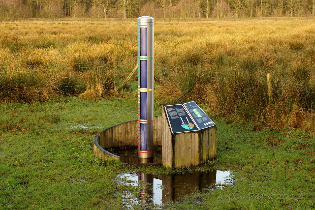 Naast de toren staat een zogenaamde grondwatermeter; alsof je zo al niet kunt zien hoe hoog het water staat.