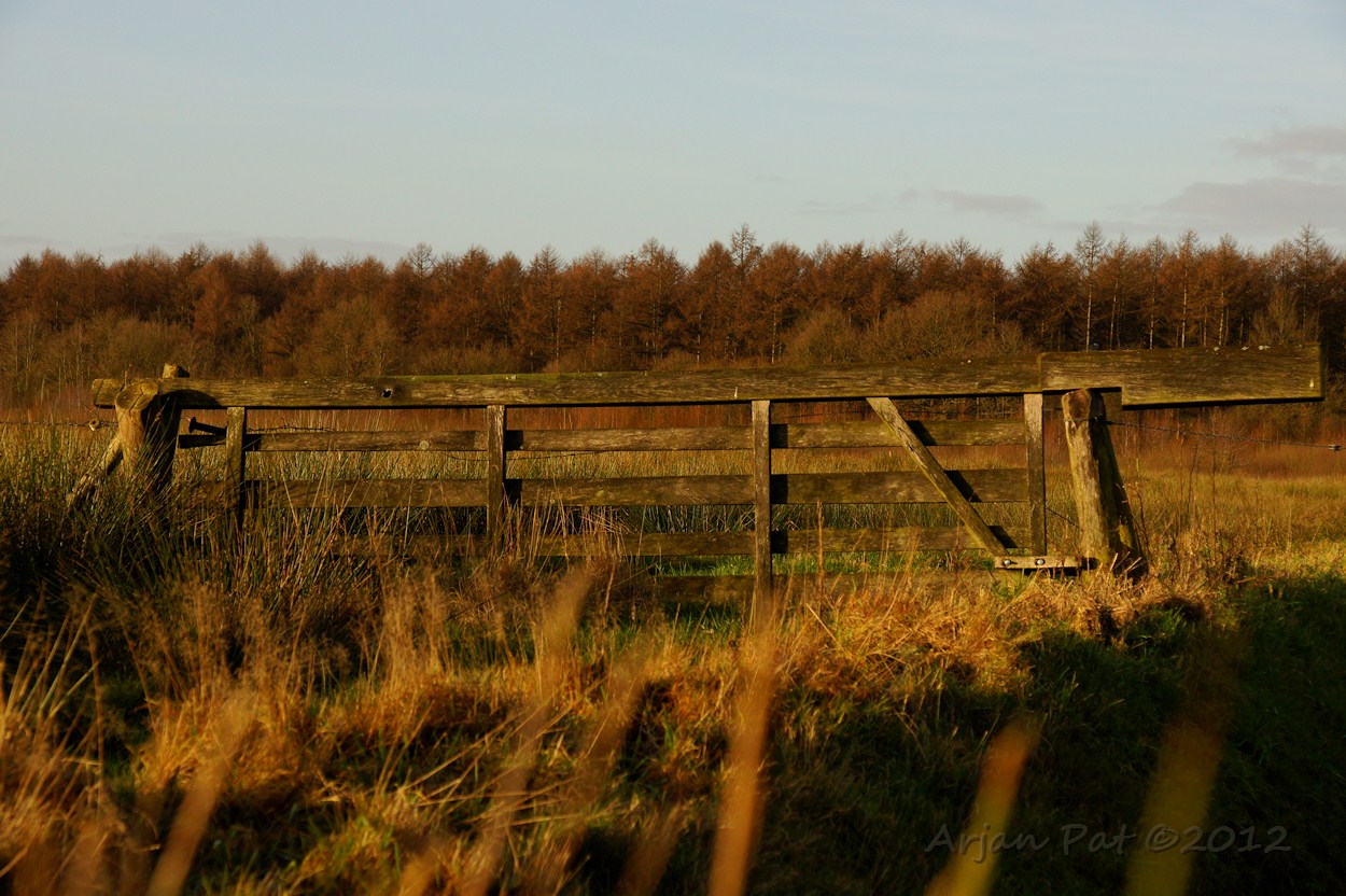 Rechts een hekje dat door de zon werd beschenen.