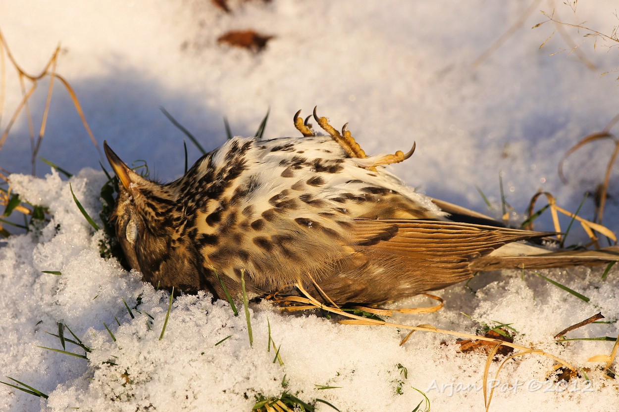 Deze zanglijster heeft de koude van de afgelopen paar dagen niet overleeft.