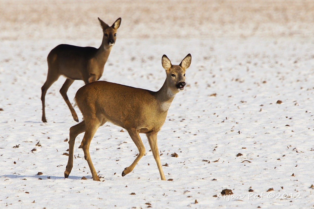 Het gebeurt niet vaak, in deze barre wintertijd, dat je een ree in z'n eentje rond ziet lopen. Deze kwam net achter mij het bos uitgelopen en was op de landerijen op zoek naar lekkernijen.
