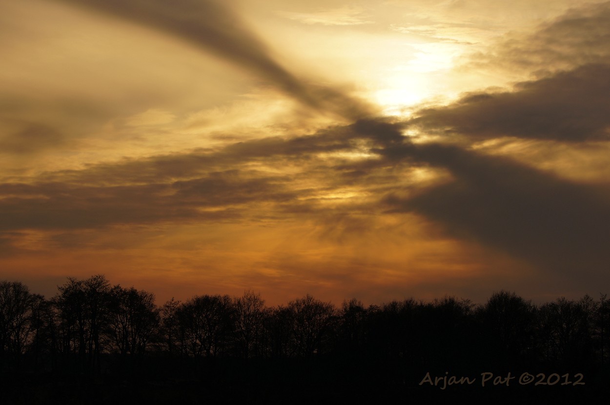 De hele dag heeft de zon geschenen en nu aan het eind van de dag komen er wolken aangedreven.