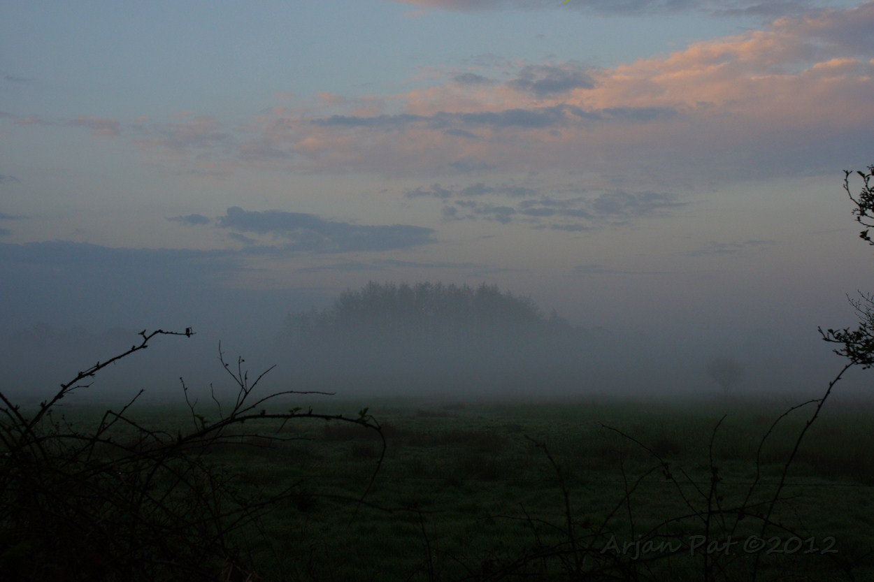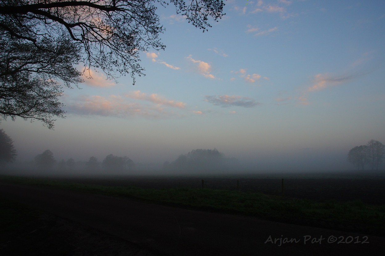 Het begin van een frisse en licht mistige ochtend.