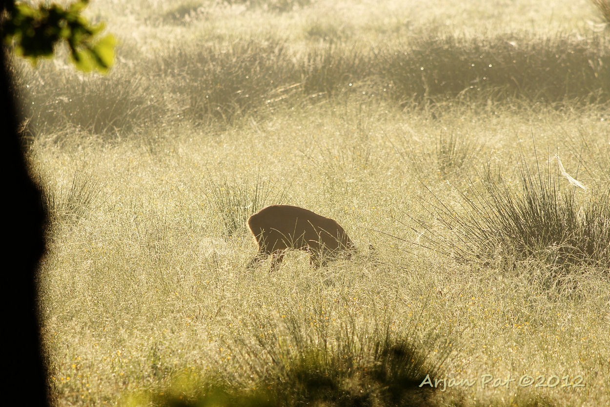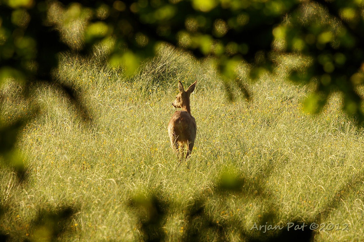 Een andere ree, slechts 100 meter verderop. Deze ree heeft ergens een jong kalfje veilig verstopt achtergelaten.