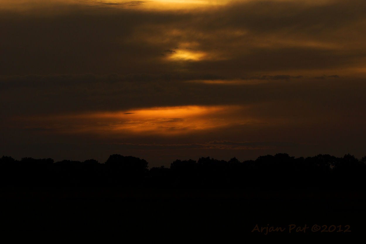 Onder de zon hingen een paar wolken, die wel een erg apart gele kleur hadden gekregen.