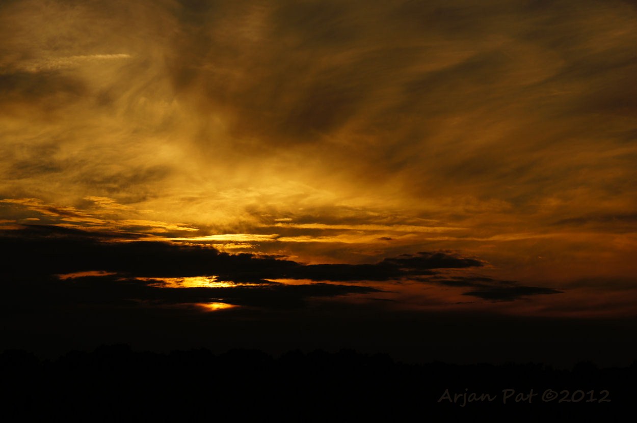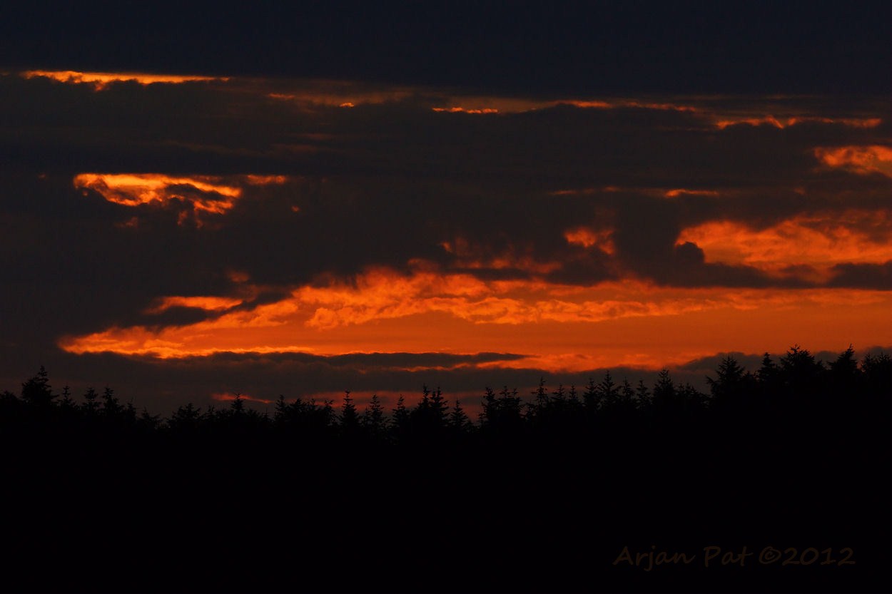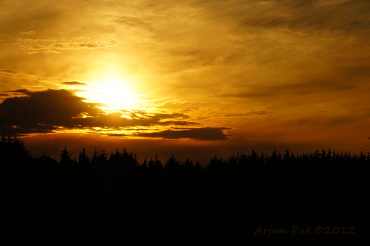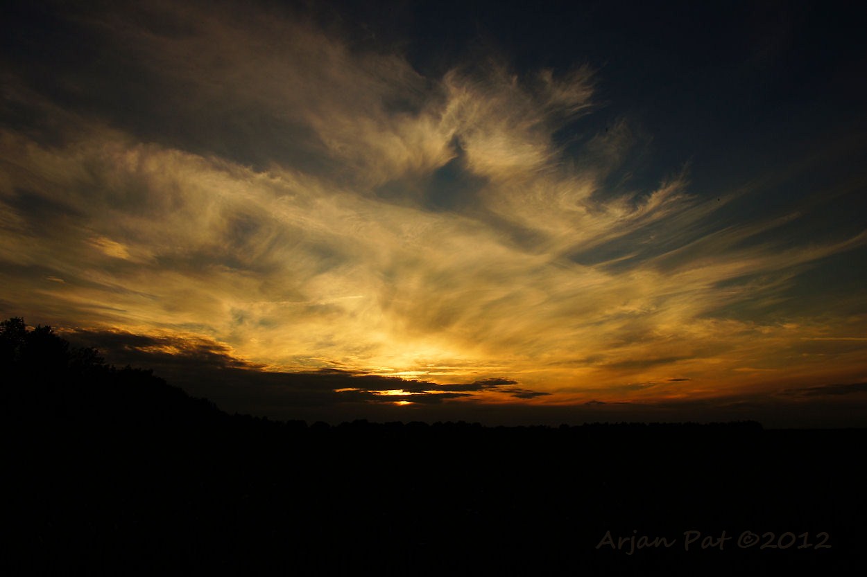 De zon houdt het niet veel langer meer vol. Langzaam zakt ze naar beneden.