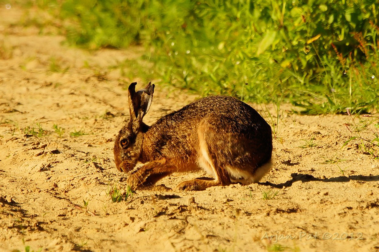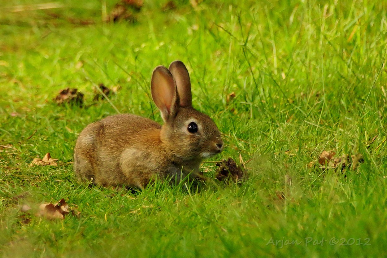 Kilometertje verderop weer een (vrij jong) konijntje.