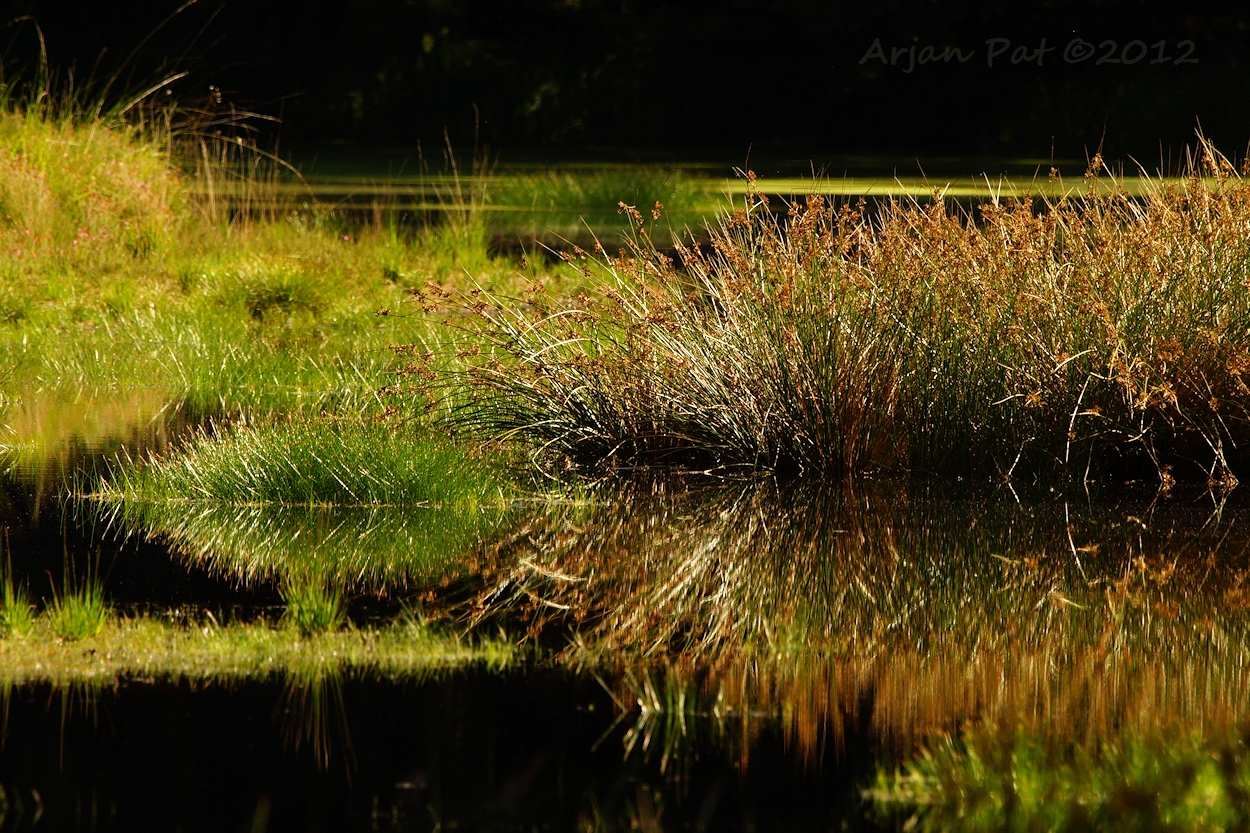Verderop nog een plasje water, niet verscholen, maar vanaf de wandelpaden gezien ligt het er open en bloot bij.